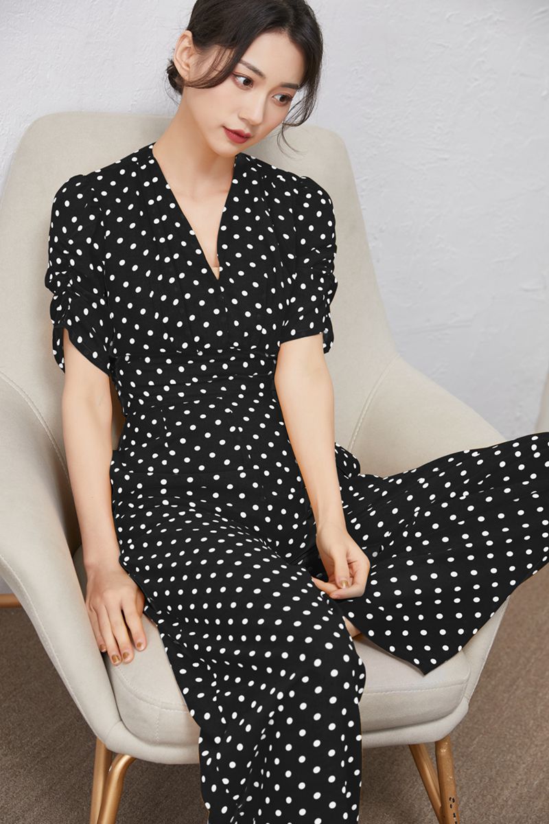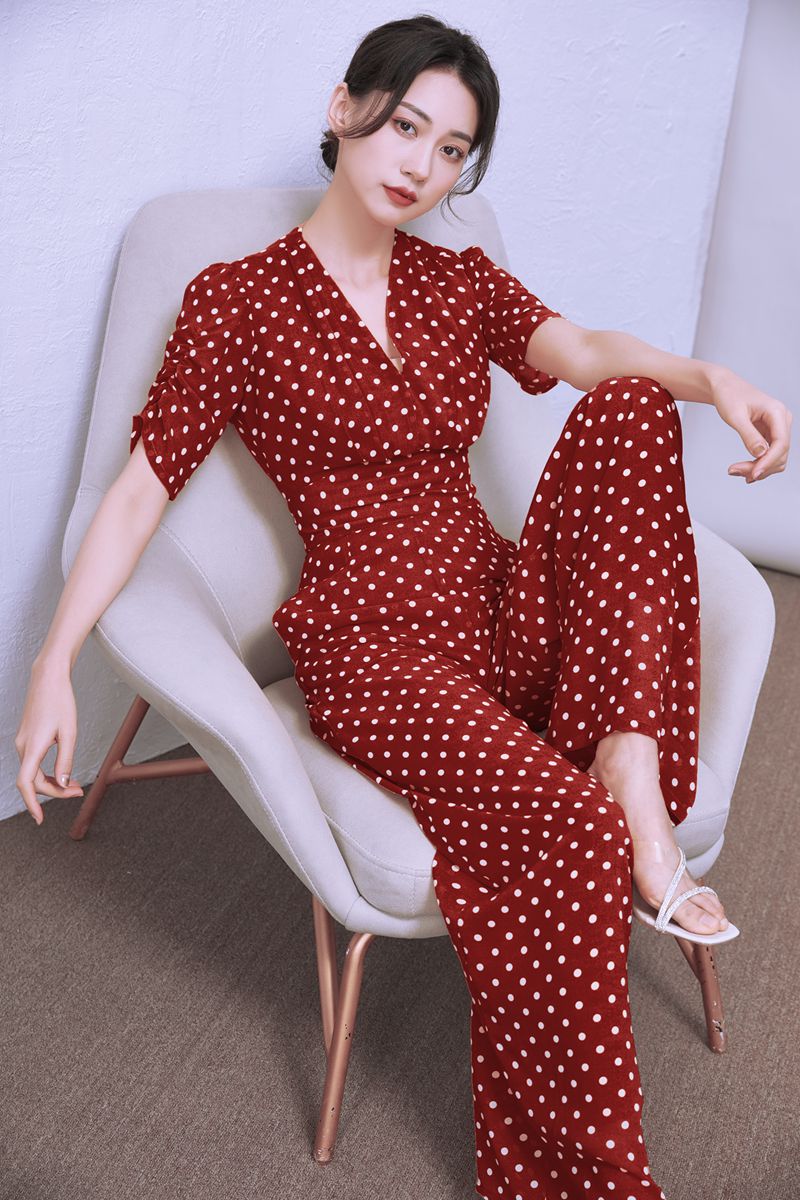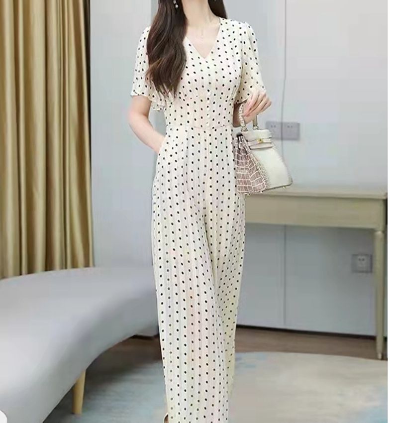 短袖波点连体裤女夏雪纺高腰修身高端气质连身裤2025年新款连衣裤