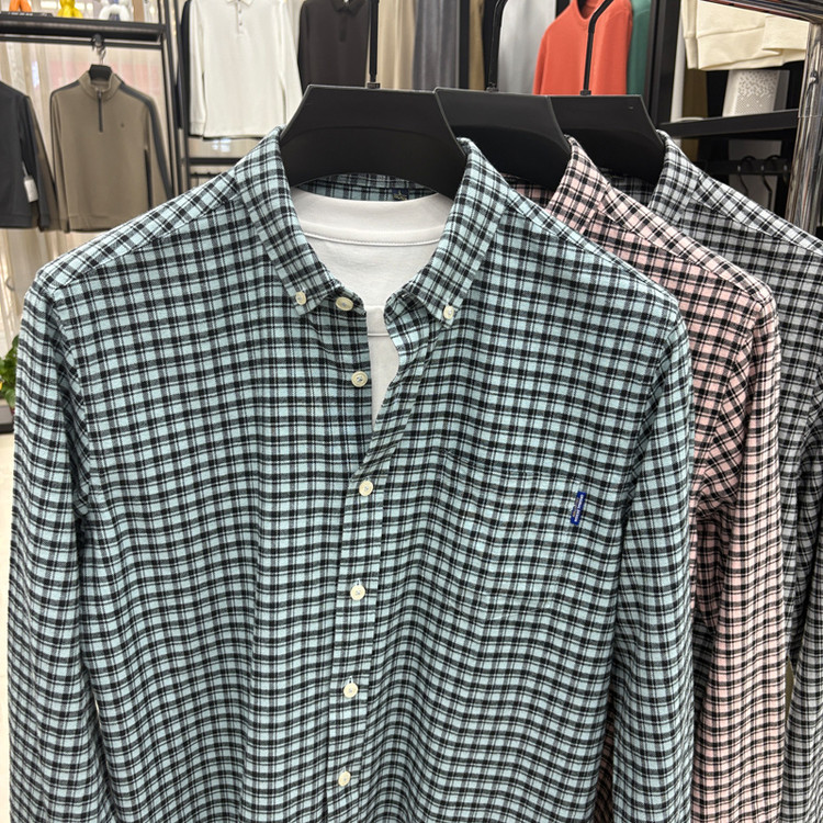 2025新款100%纯棉磨毛格子衬衫男士长袖休闲商务中年衬衣爸爸装寸