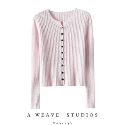 富家大小姐!太能搭了~圆领100%纯羊绒开衫女毛衣针织打底衫秋冬