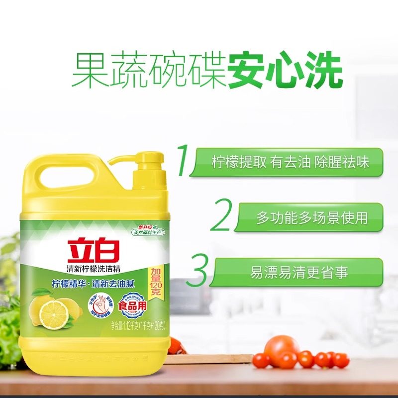 立白柠檬洗洁精食品用洗涤剂级家用实惠装大桶不伤手无残留官方
