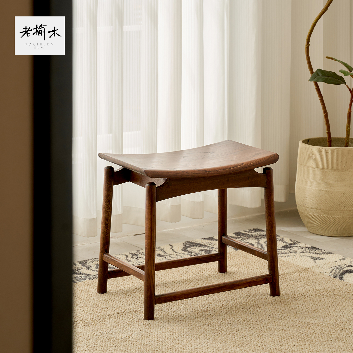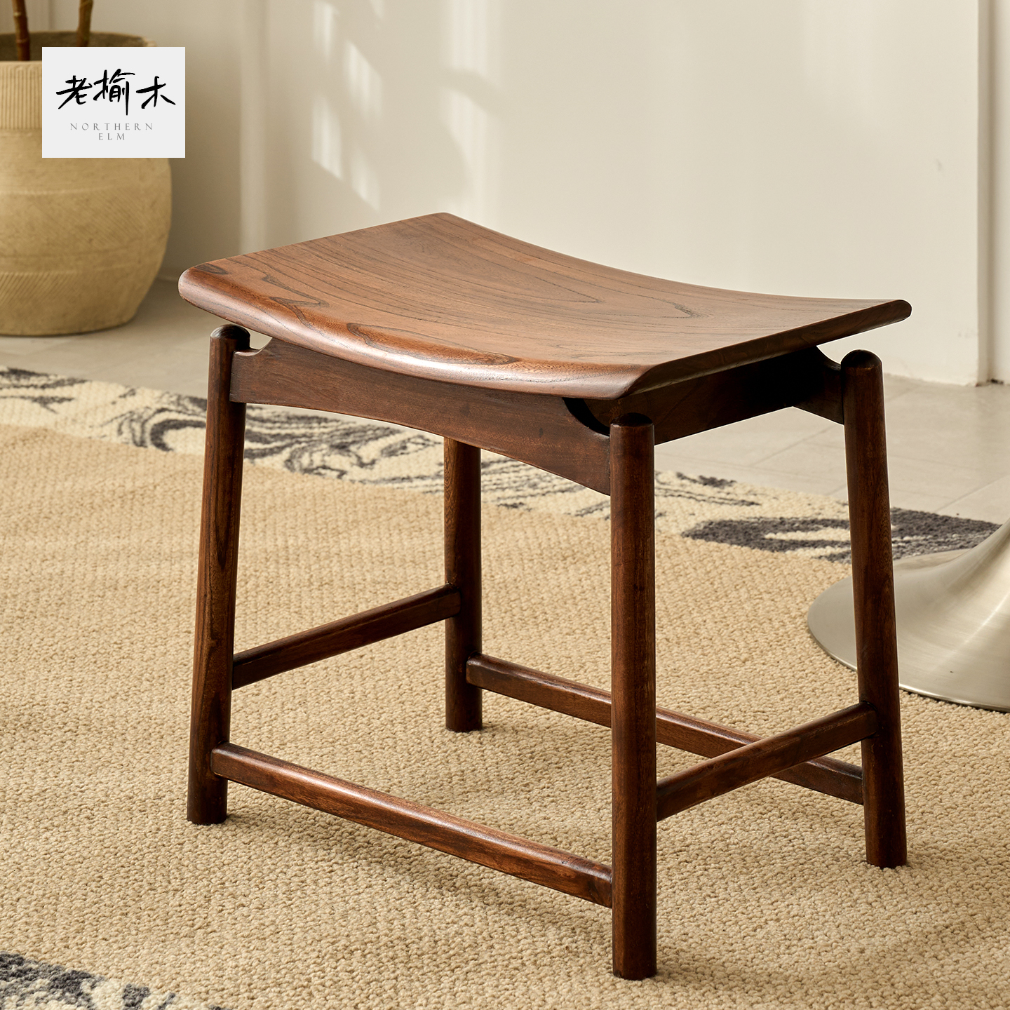 2025新款榆木凳子矮凳全实木小椅子家用客厅木头坐凳高级感马鞍凳