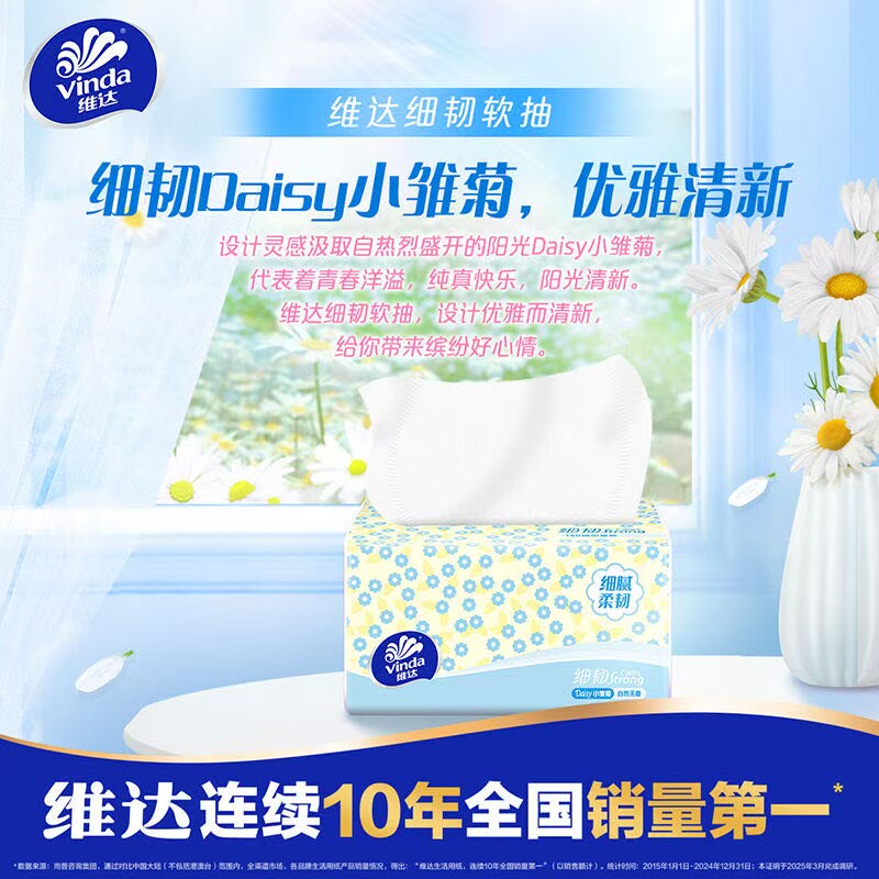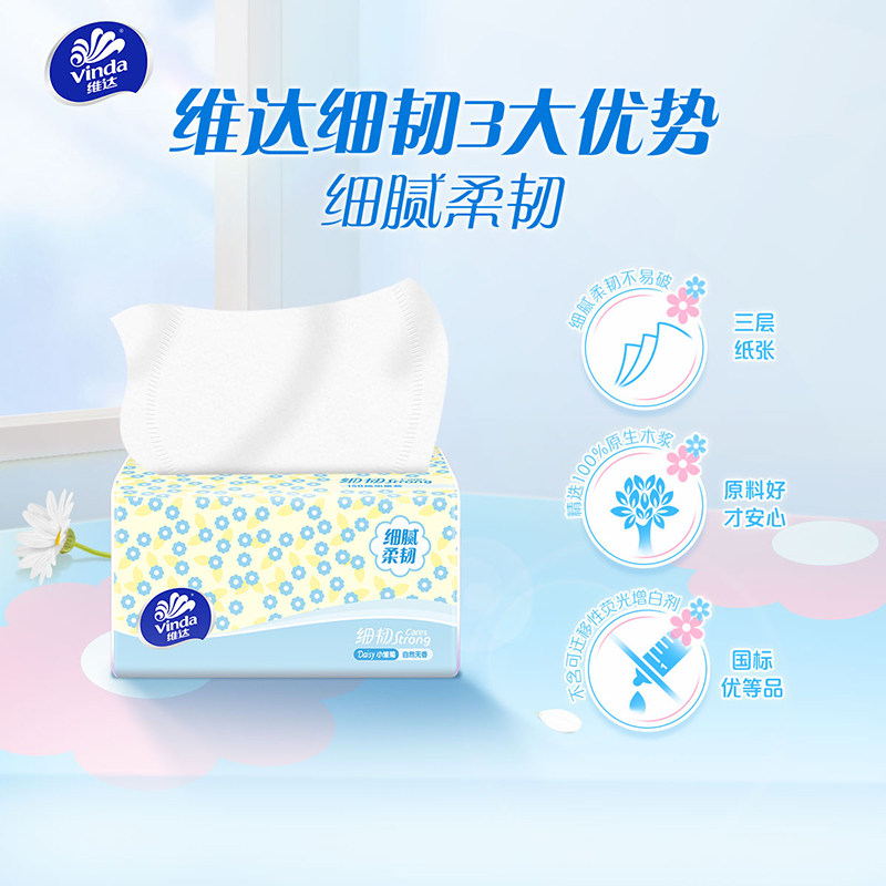 维达抽纸细韧纸巾3层150抽家用大包餐巾纸卫生纸面巾纸擦手实惠装