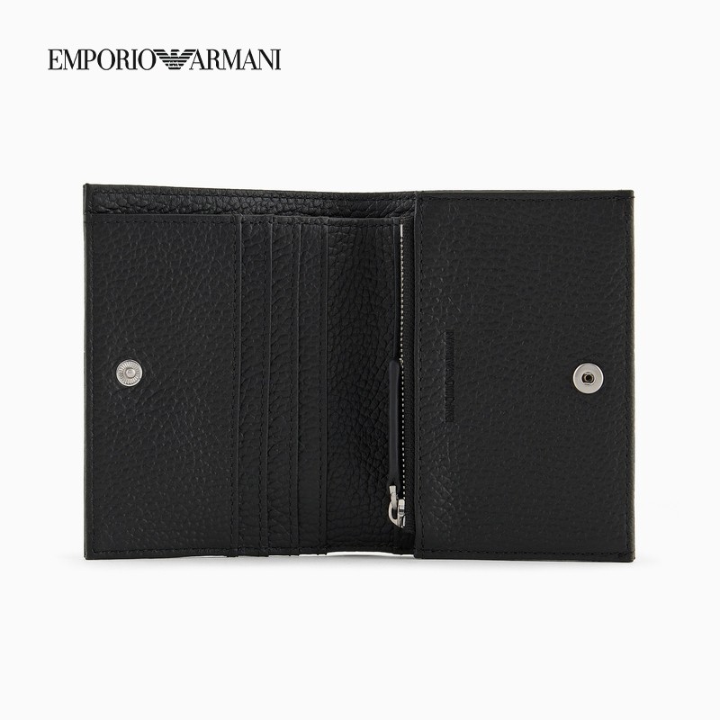 【礼物】EMPORIO ARMANI/阿玛尼春夏男牛皮革荔枝纹对折钱包卡包