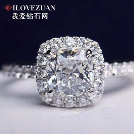 我爱钻石网枕形1克拉钻石戒指女群镶钻戒女1克拉定制gia裸钻南非