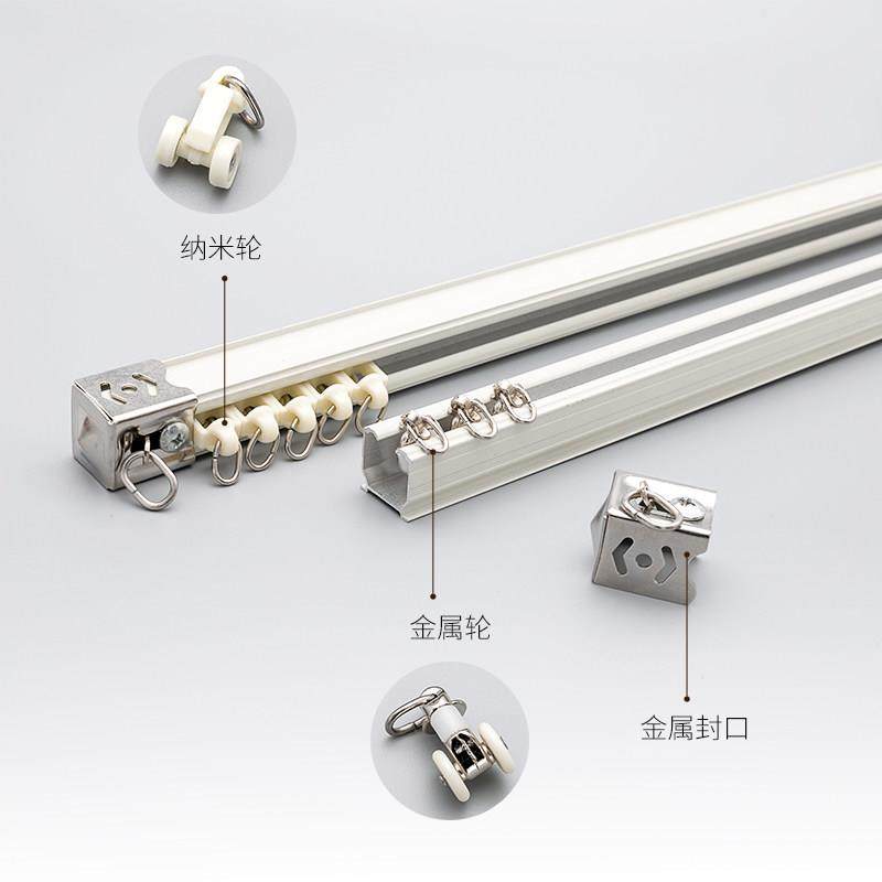 加厚特级铝合金窗帘轨道静音成品窗帘杆滑轨滑轮顶装侧装单双轨道
