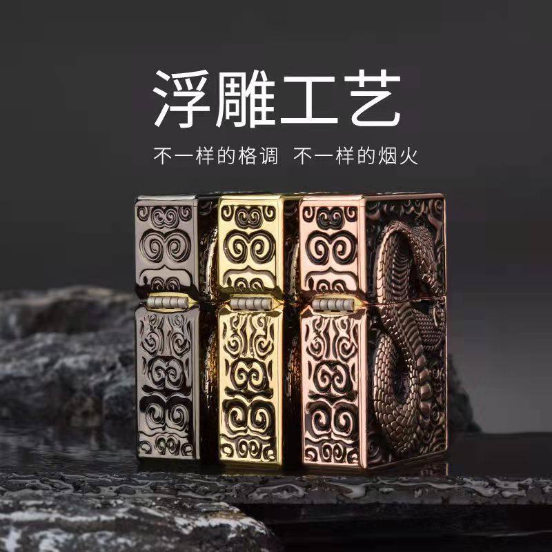 祝融佐罗新品902重盔甲套壳浮雕蛇款煤油打火机黄铜个性男士复古