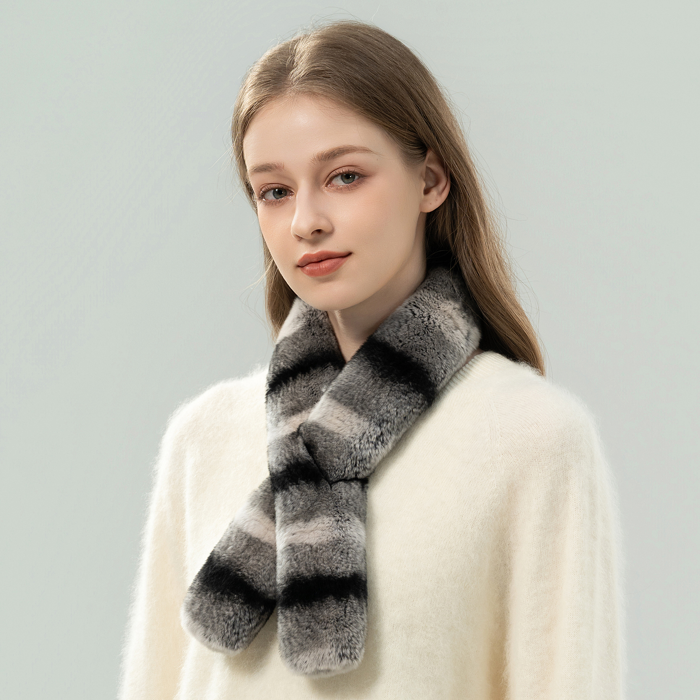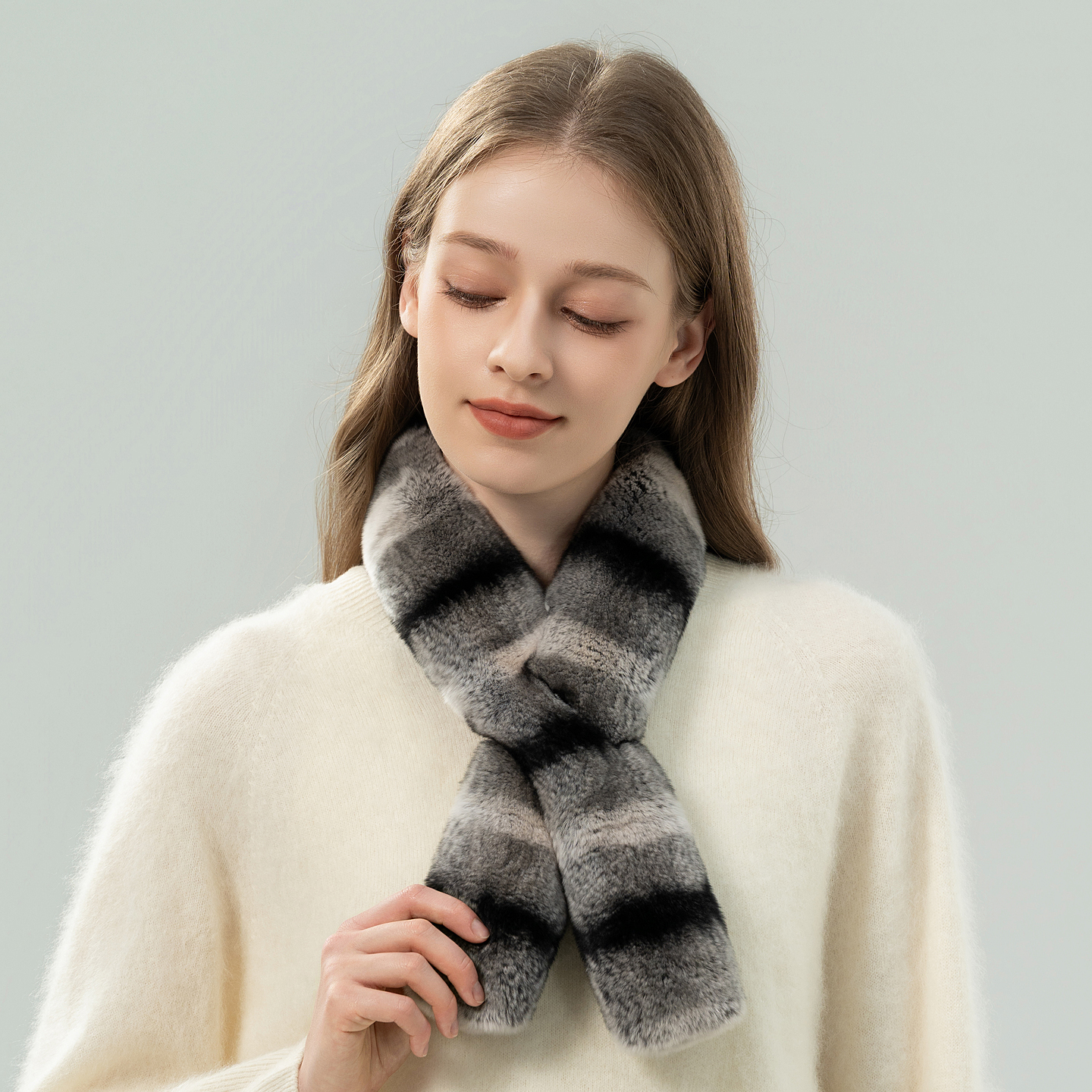 秋冬新款真獭兔毛皮毛一体细小围巾女青紫蓝皮草围脖时尚保暖加厚