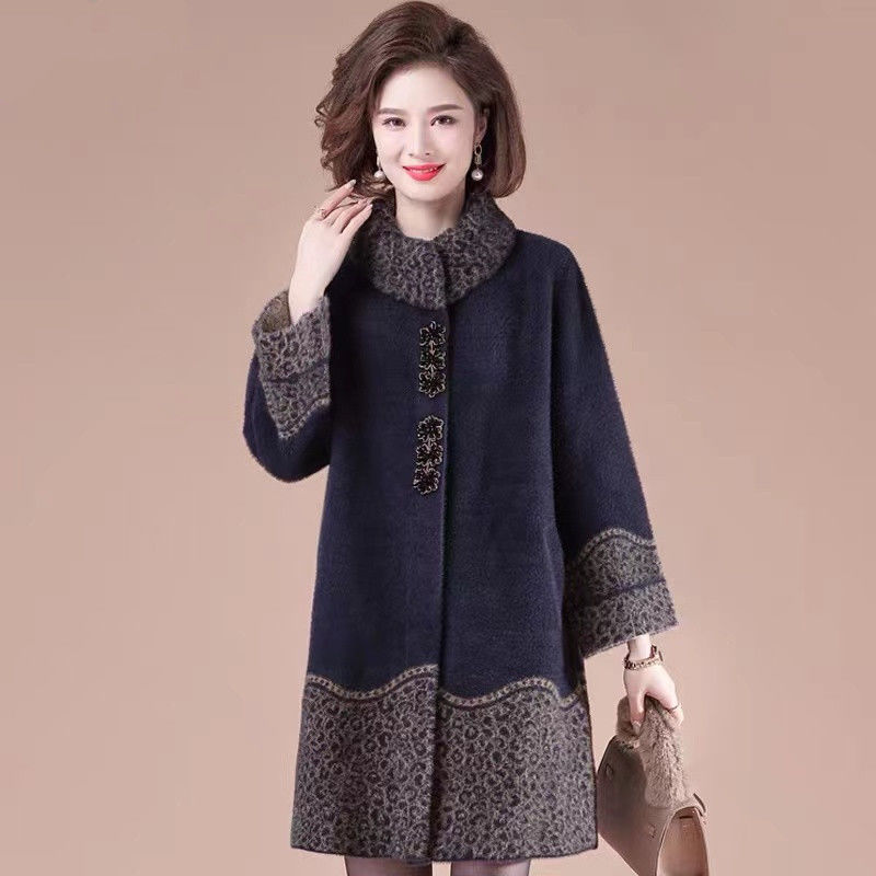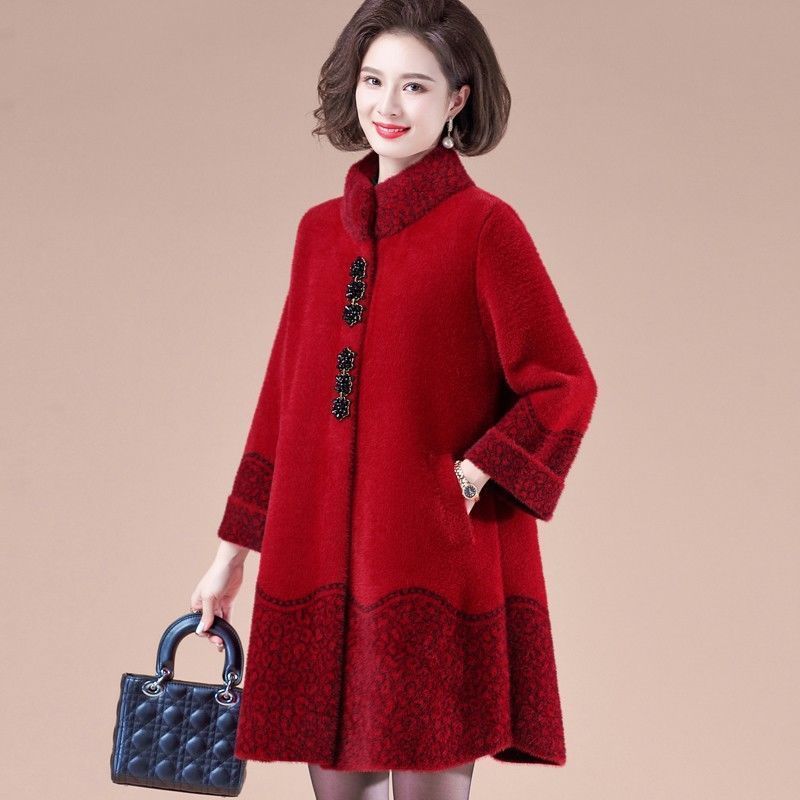 胖妈妈秋冬装仿水貂绒外套加肥加大码洋气中老年女加厚双面绒大衣