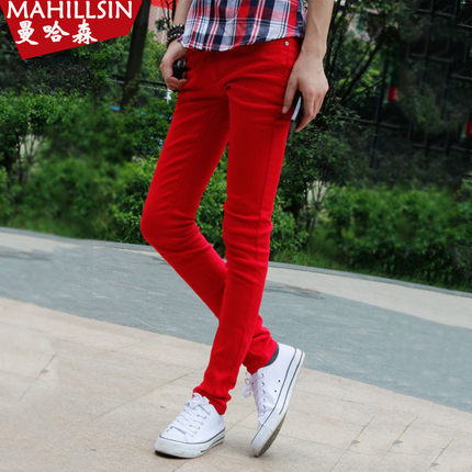 潮流秋季大红色铅笔裤