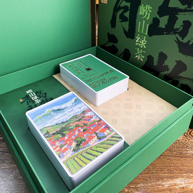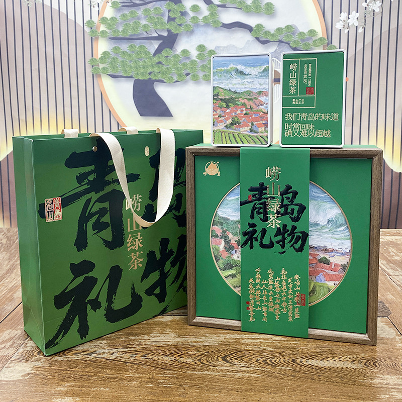 崂茗崂山绿茶礼盒装手工豆香茶