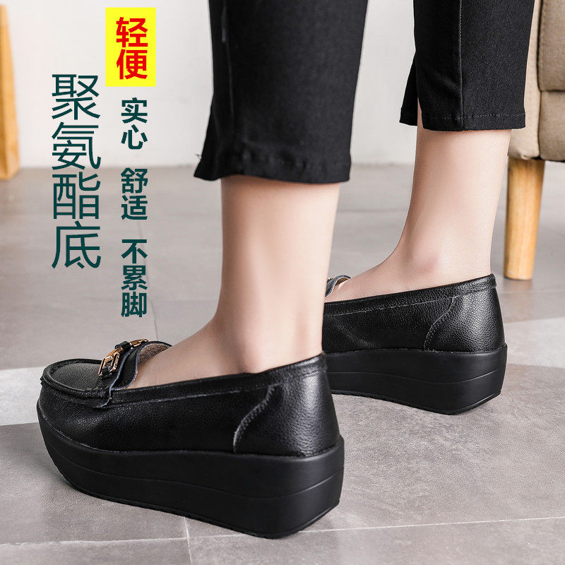 摇摇厚底真皮女一脚蹬女鞋中跟坡跟浅口松糕鞋妈妈单鞋2024春秋款