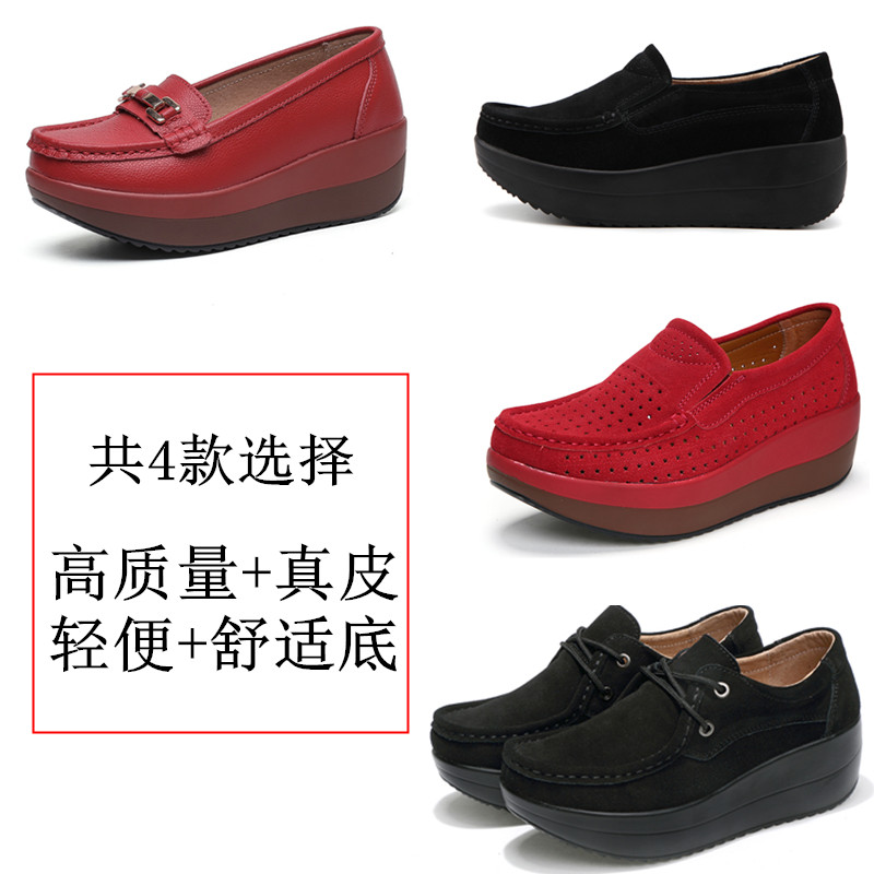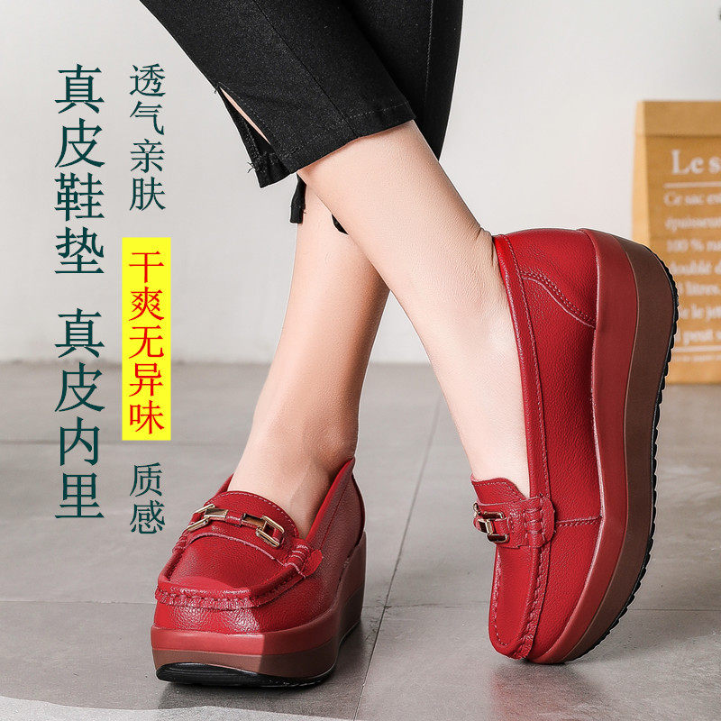 2024真皮浅口厚底坡跟松糕鞋女鞋