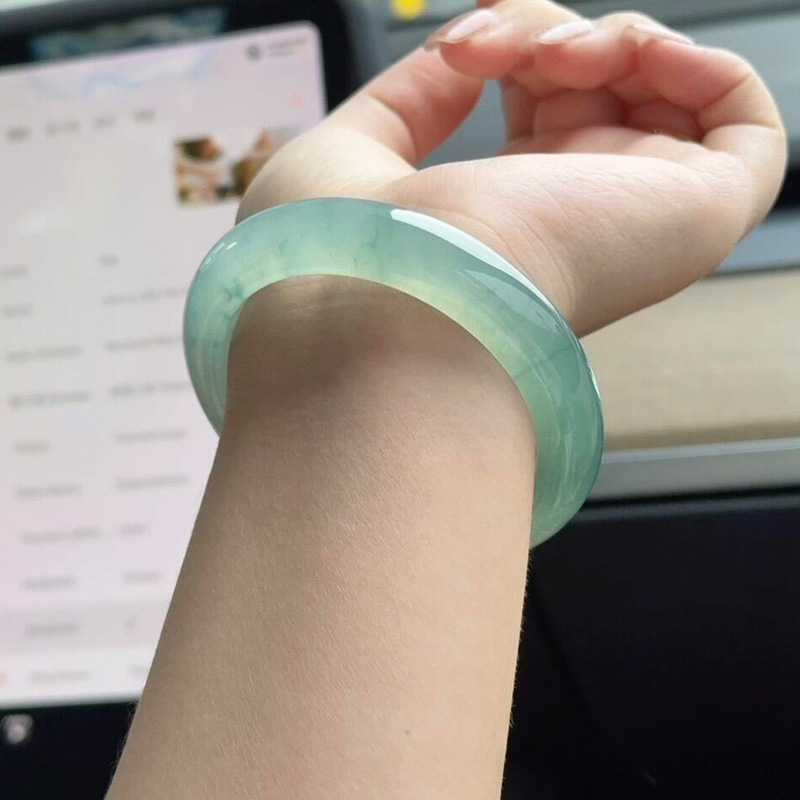 "风遇青山"缅甸高端古法翡翠正品玉手镯子冰种飘花真玉石饰品处理