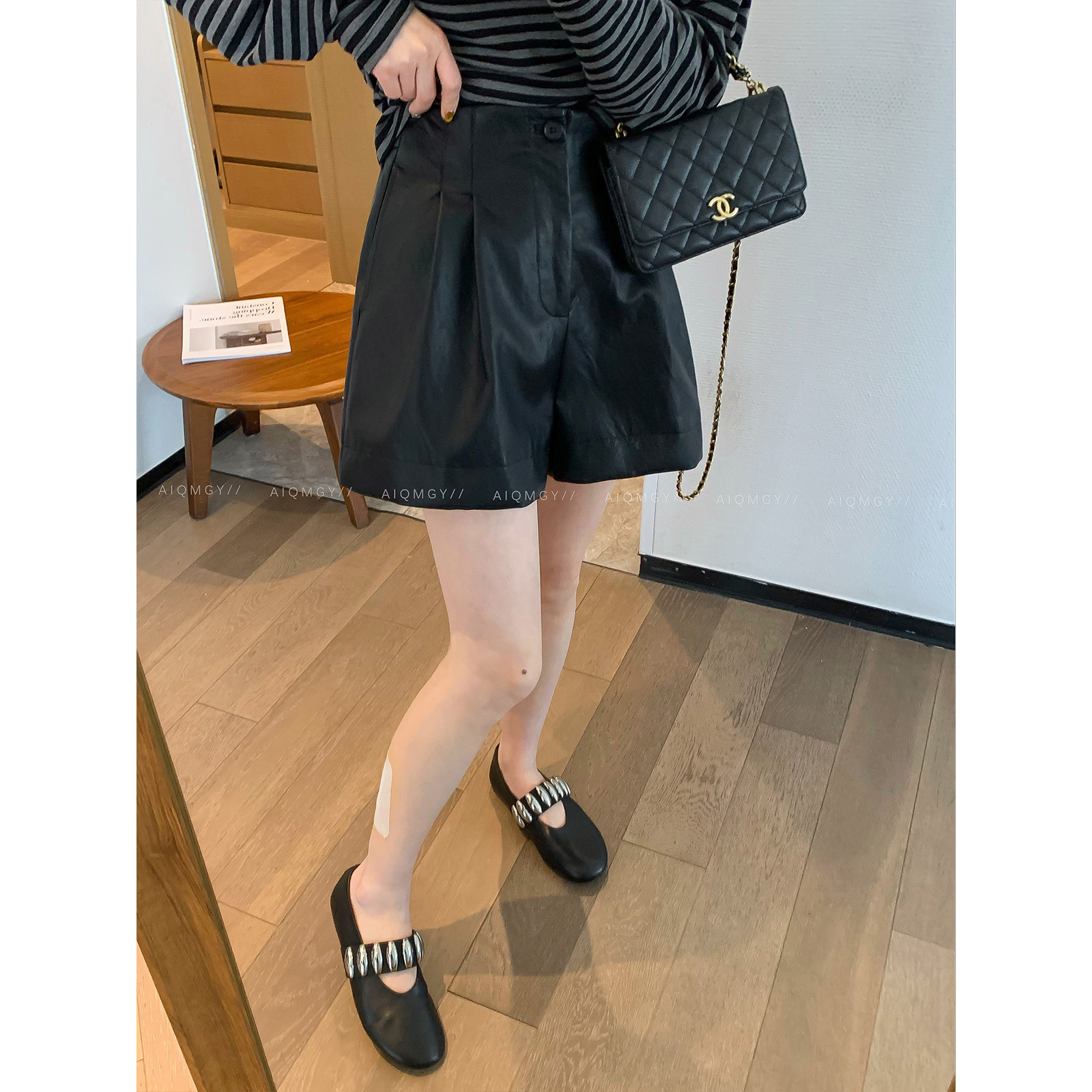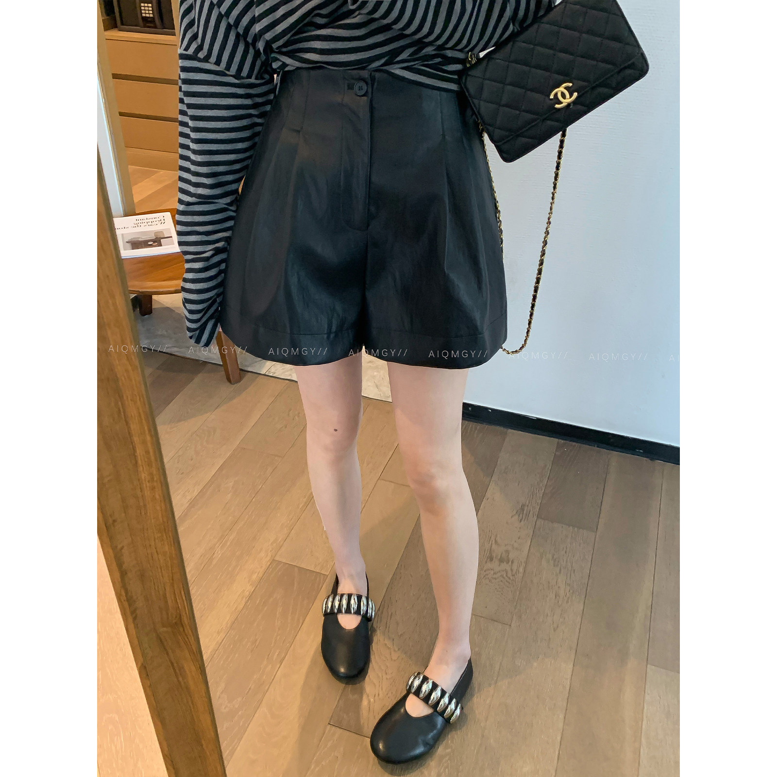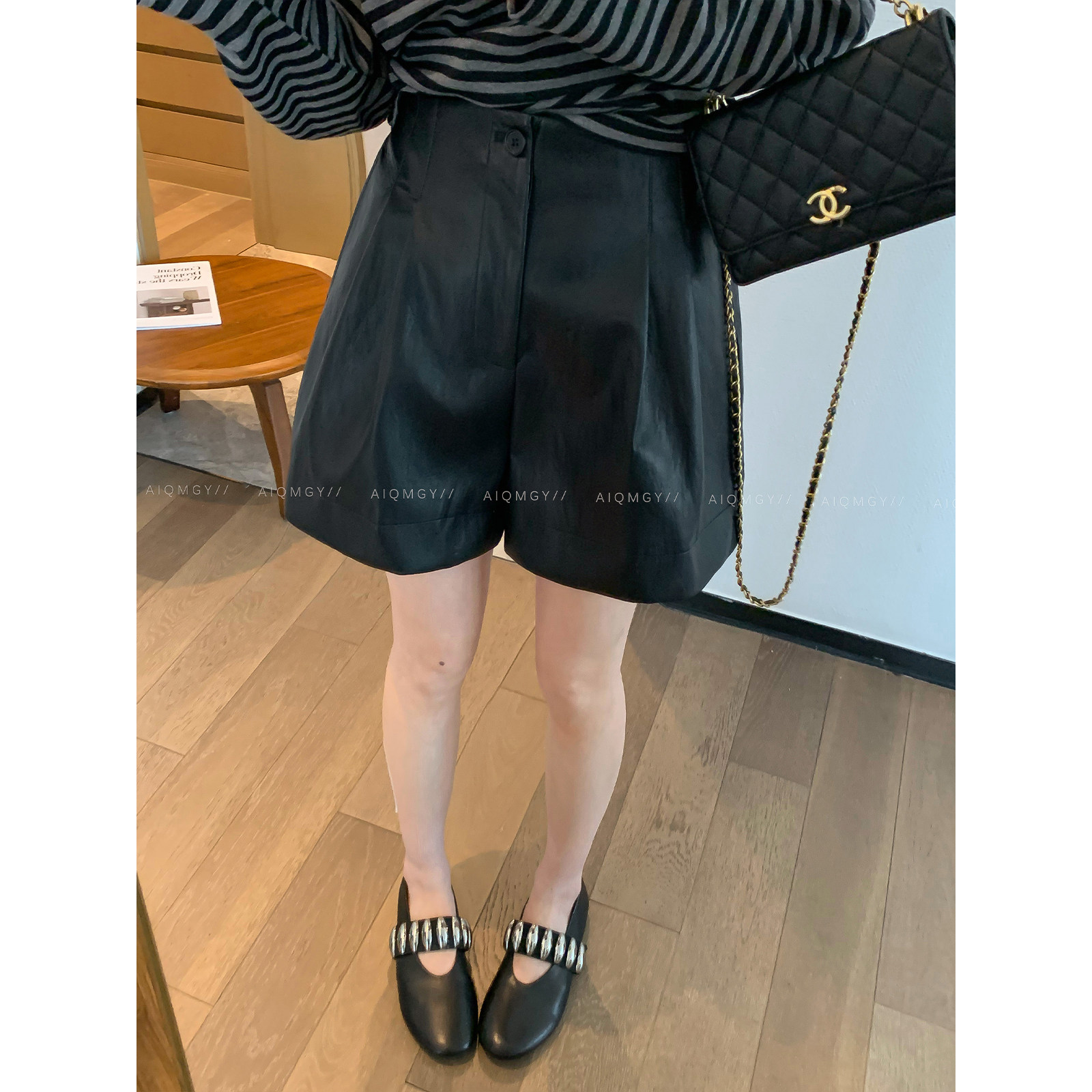 爱情魔鬼鱼PU皮短裤休闲阔腿裤