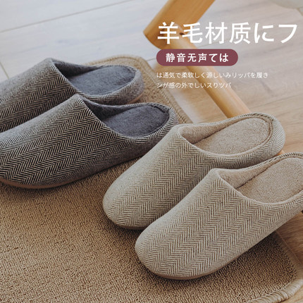 日式静音棉拖鞋冬季软底防滑女家居室内情侣男木地板家用保暖机洗