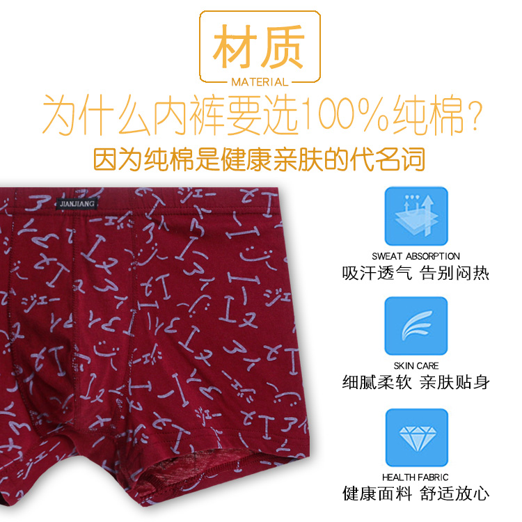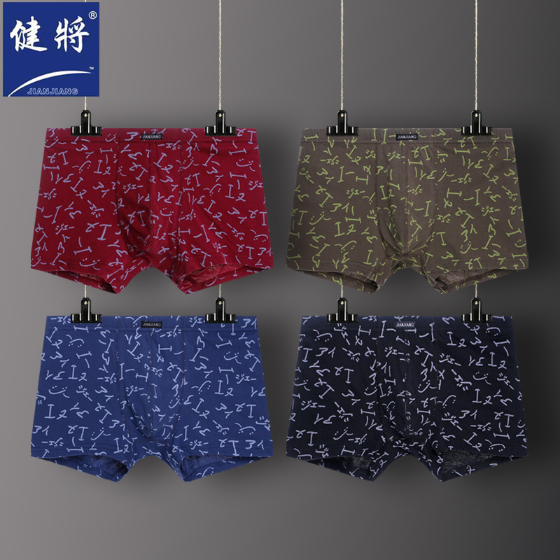 2条装健将男士内裤纯棉透气100%全棉大码青年性感中腰运动平角裤