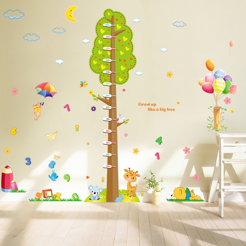 卡通量身高树墙贴画n教室布置儿童房身高贴宝宝量身高尺可移除贴