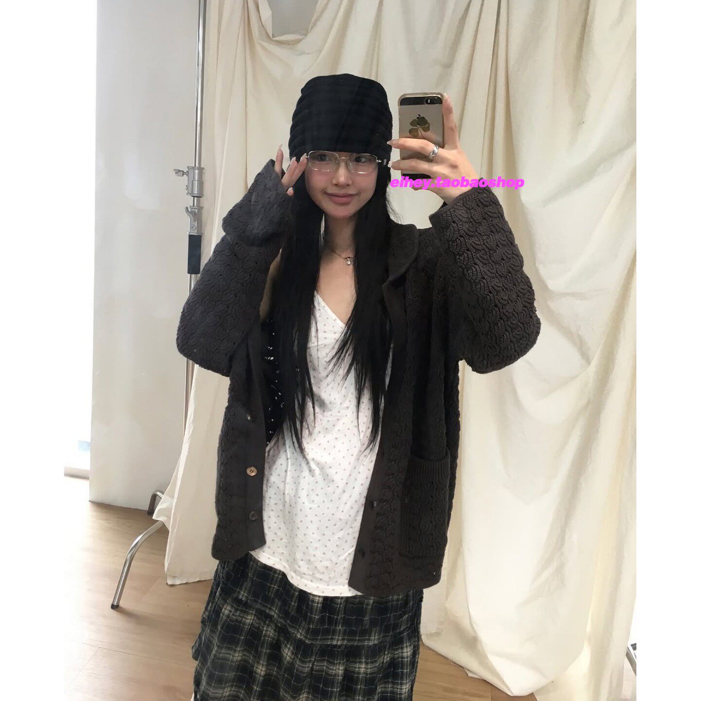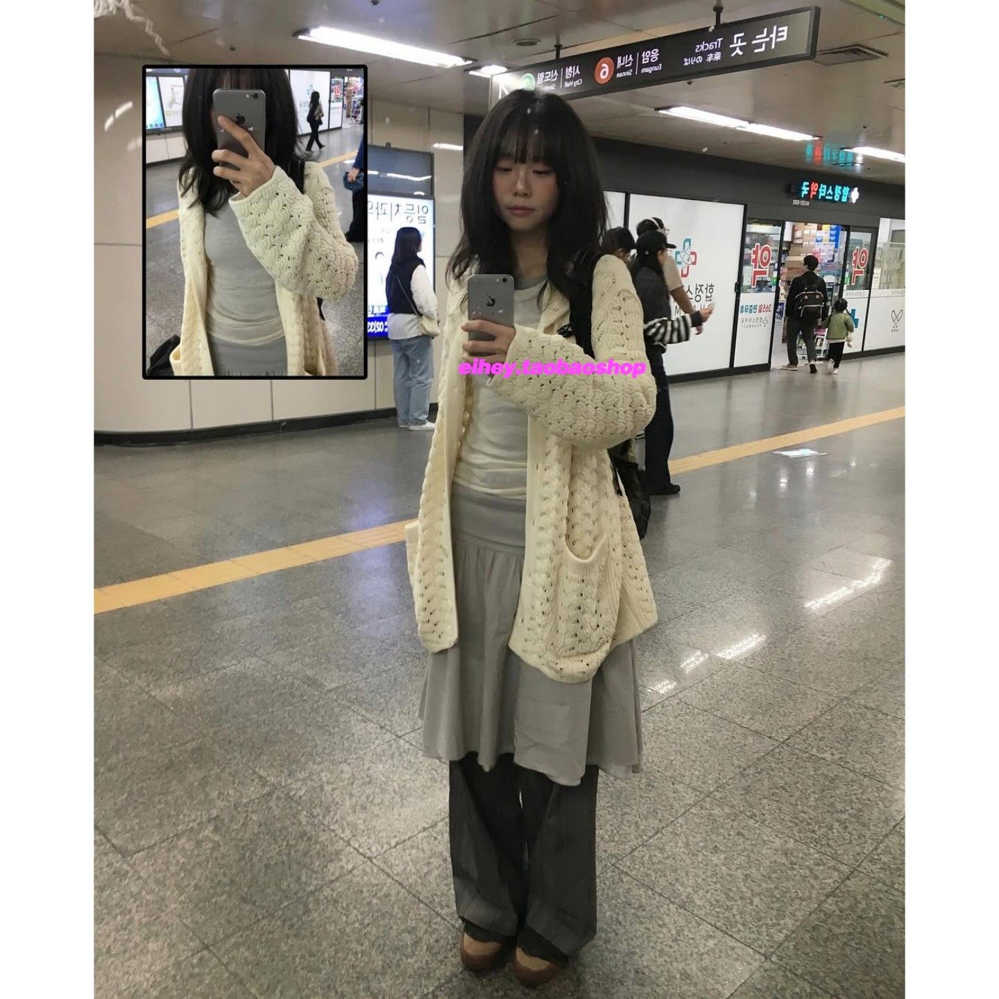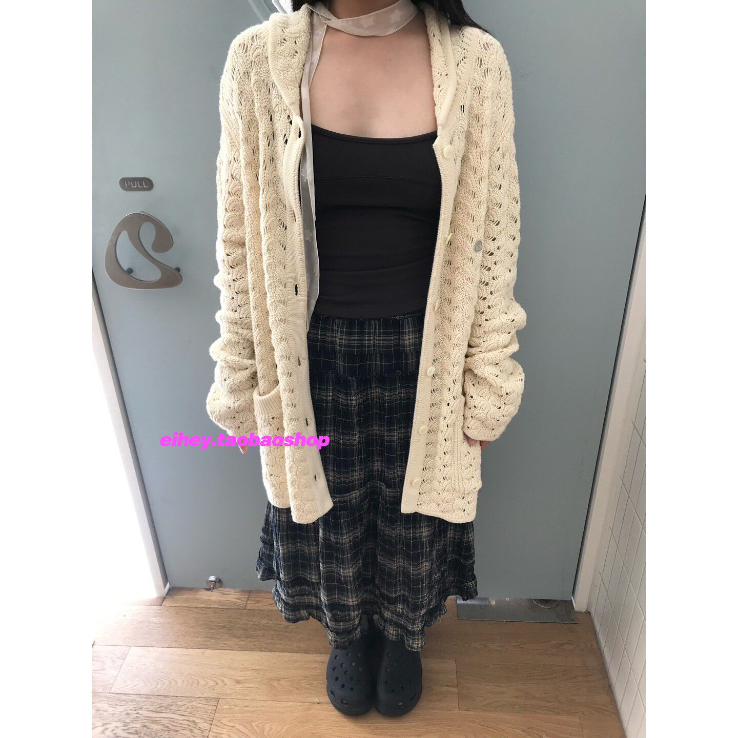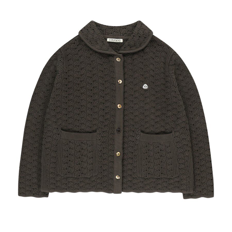 eihey诶嘿春季复古日系少女提花镂空娃娃领宽松长袖针织开衫外套