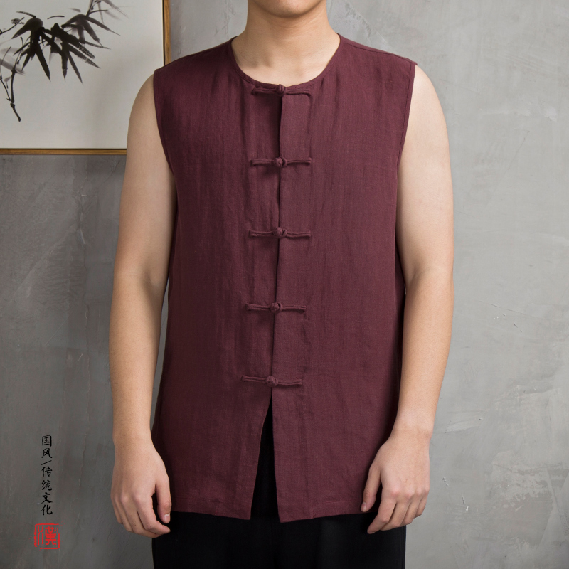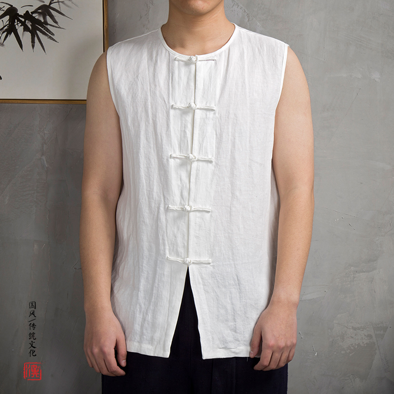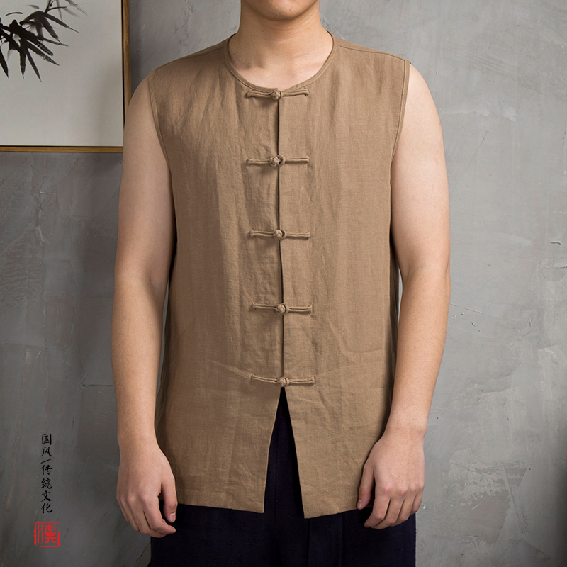 中国风男装亚麻汗衫背心宽松汉服禅服茶人服中式唐装无袖坎肩马甲
