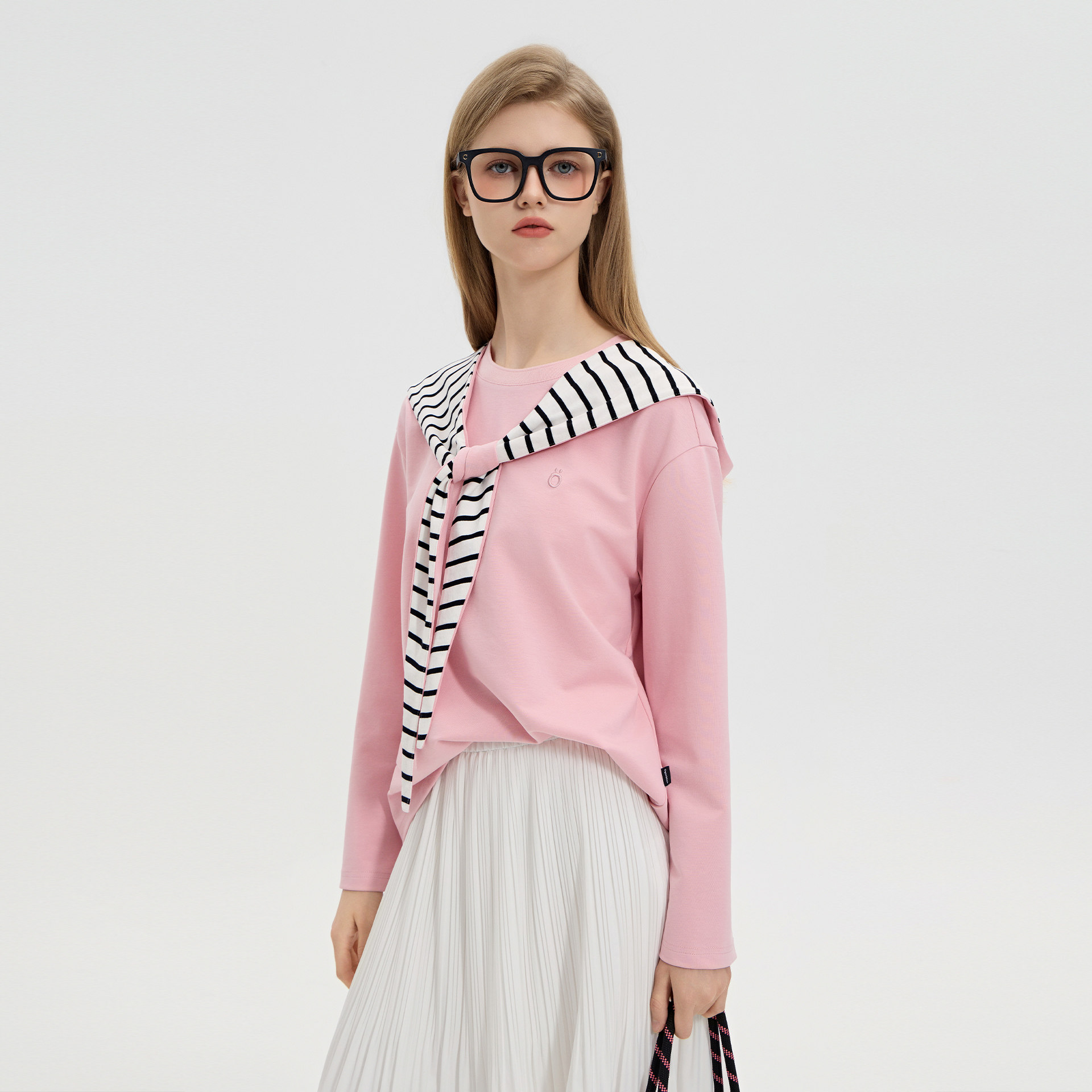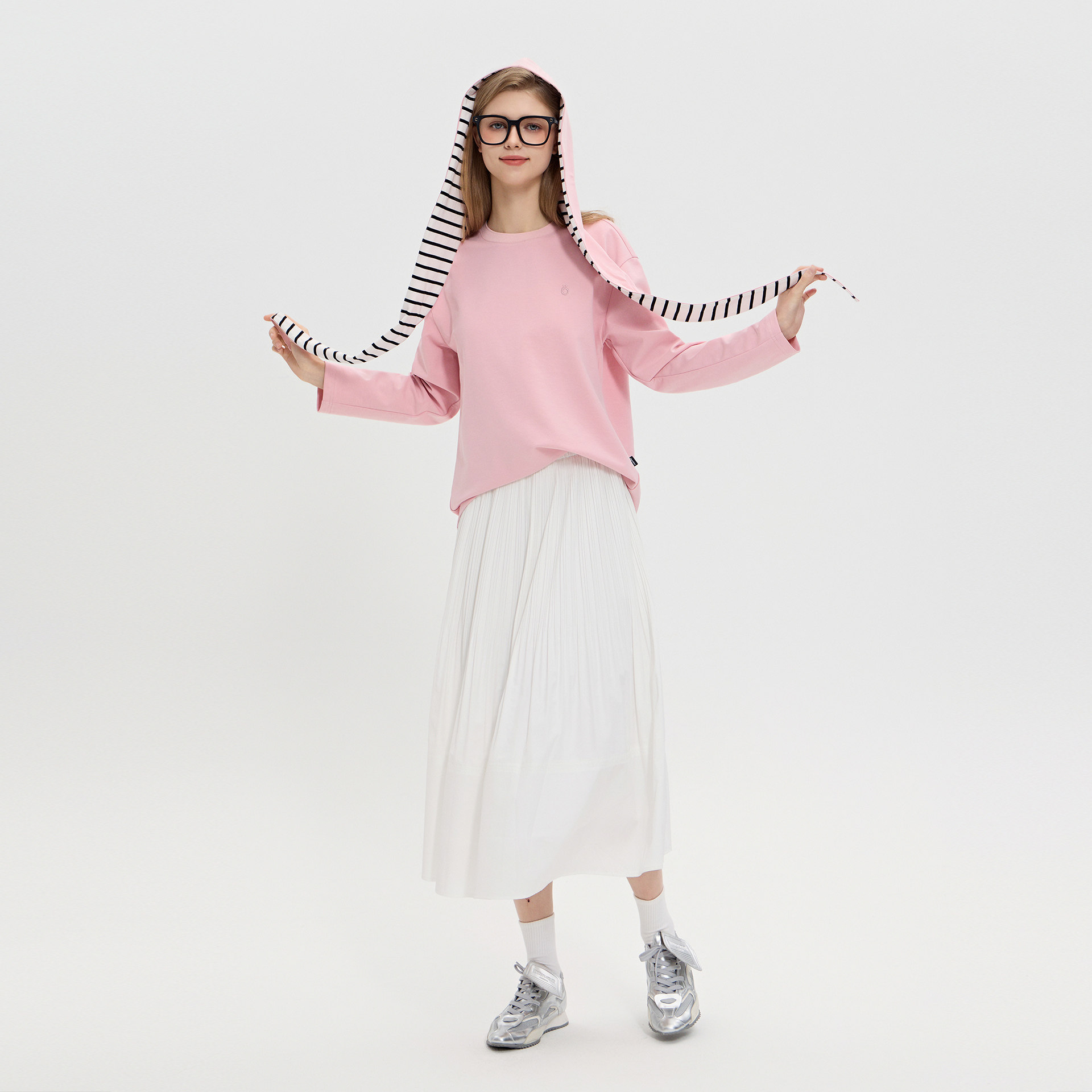 商场同款北欧时刻粉色直筒套头卫衣女26年春秋新款落肩慵懒上衣