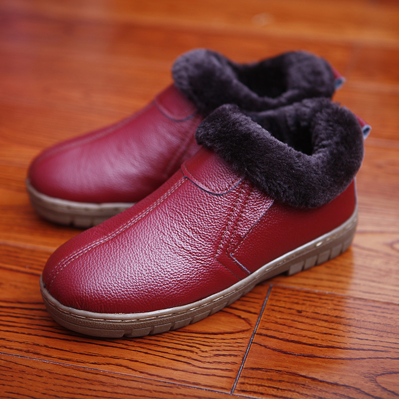 头层牛皮棉拖鞋包跟 冬季男女老人防滑保暖居家真皮厚底拖鞋包邮