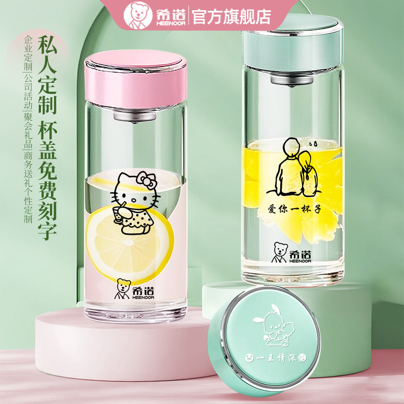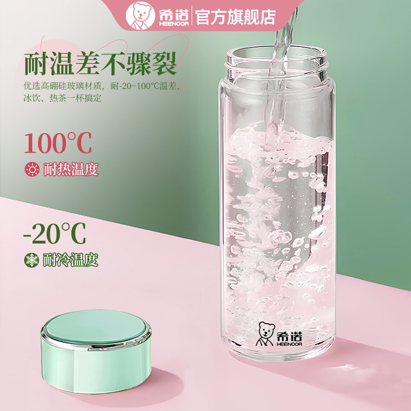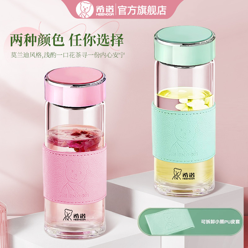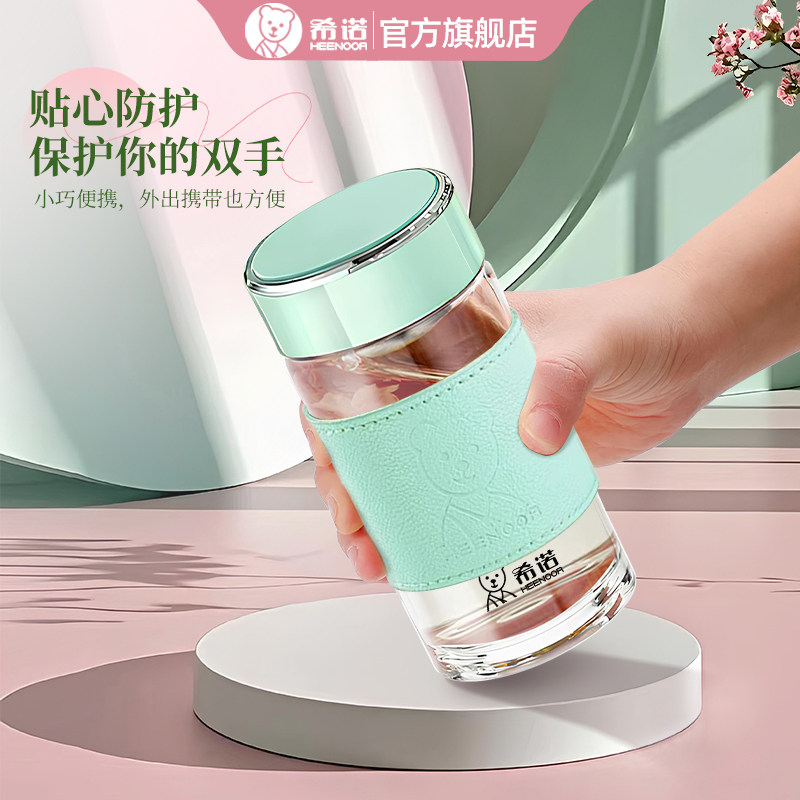 希诺单层玻璃杯2025新款女高颜值花茶杯子办公家用便携泡茶饮水杯