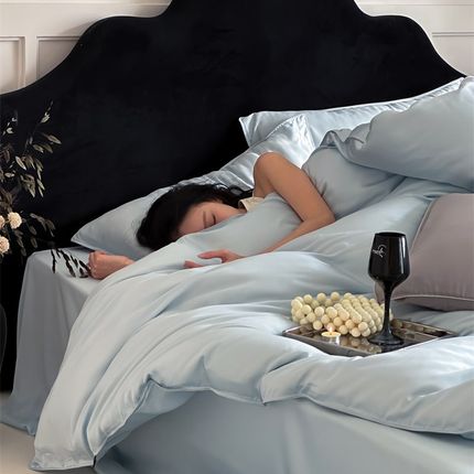 60s兰精天e丝纯色天空蓝四件套莱赛尔纤维1.5m1.8床单被套丝滑裸