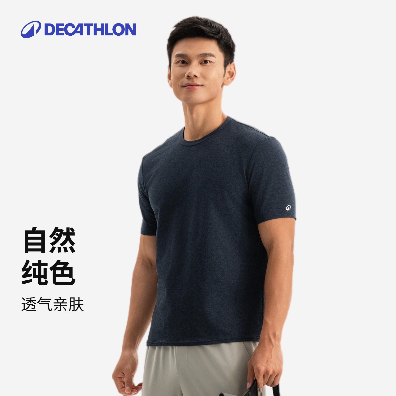 迪卡侬短袖简约休闲男士T恤透气
