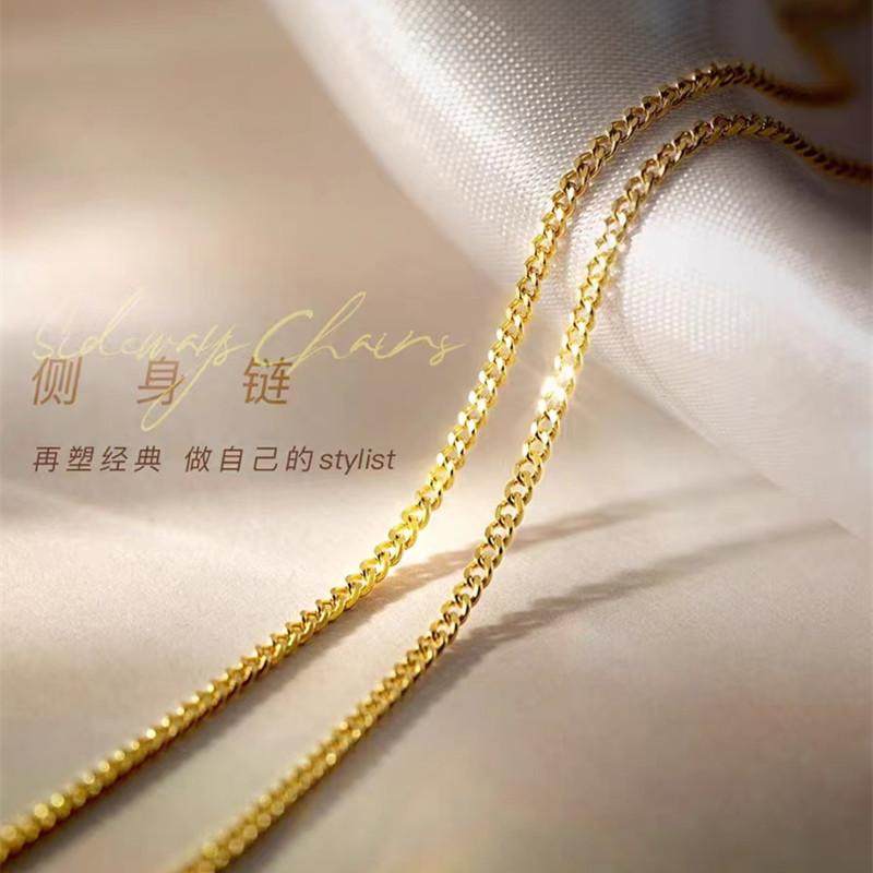 侧身链18k黄金色项链女士时尚百搭真金色久不掉色扁平加长链子