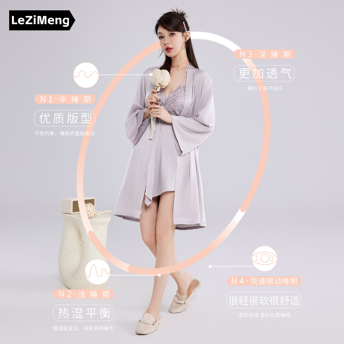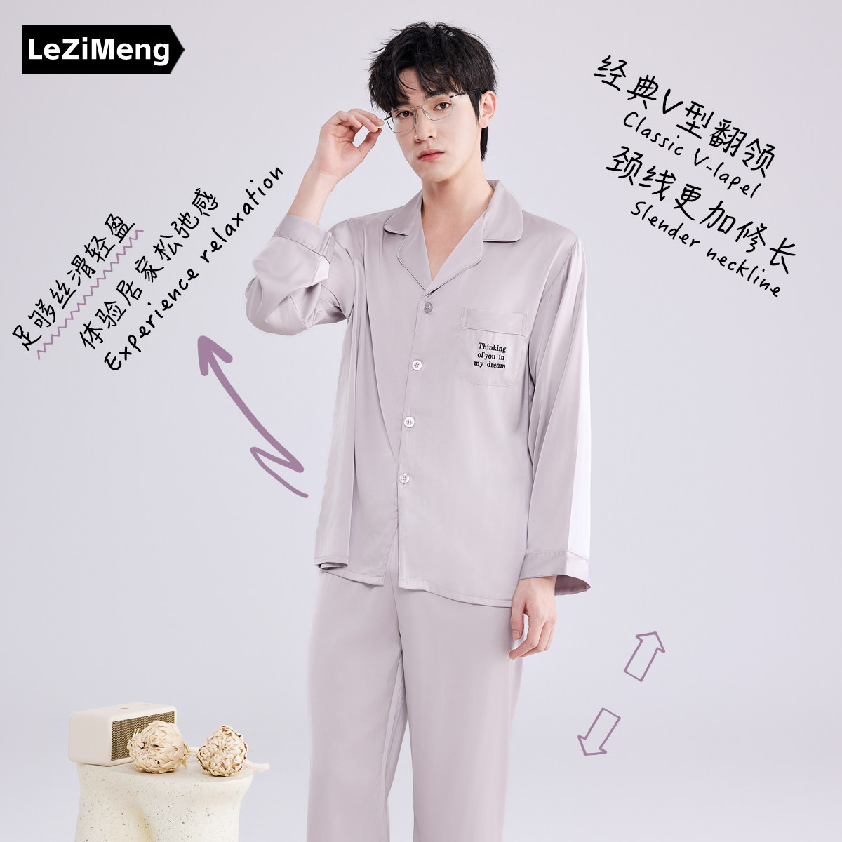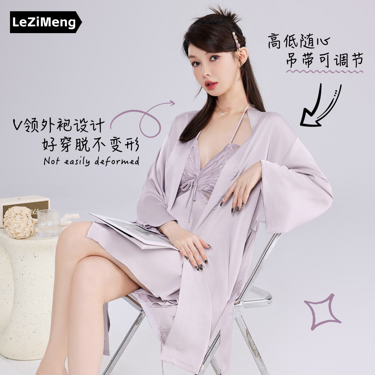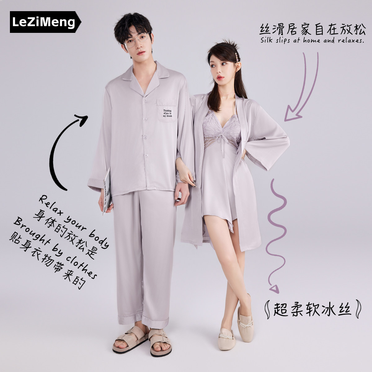 乐姿梦情侣睡衣春秋冰丝女性感吊带睡裙袍夏季家居服长袖男士套装