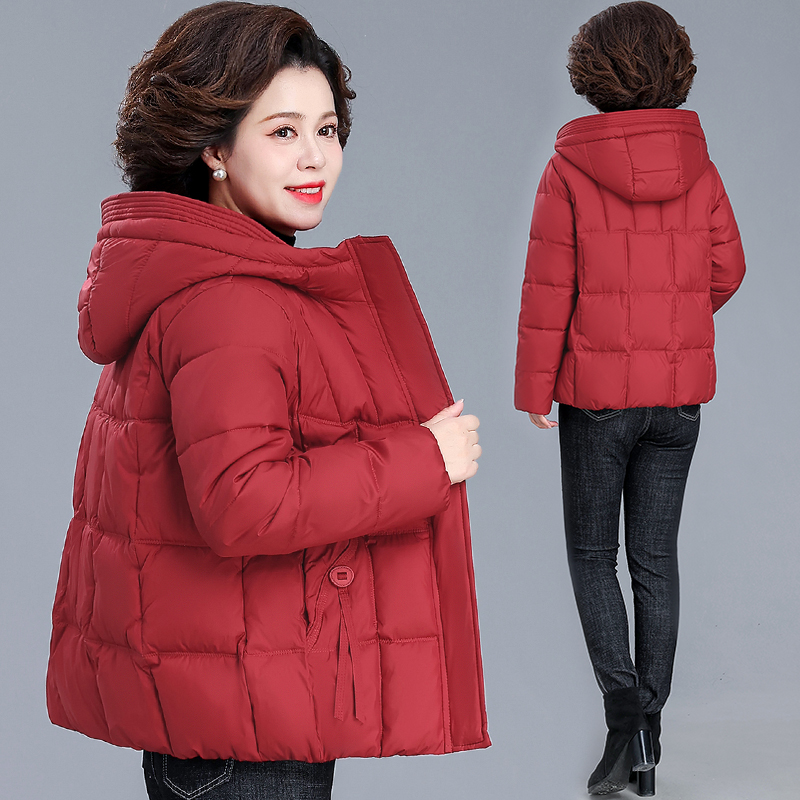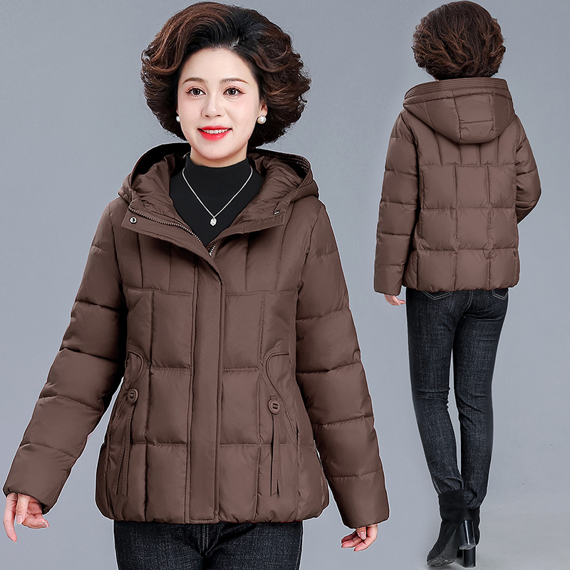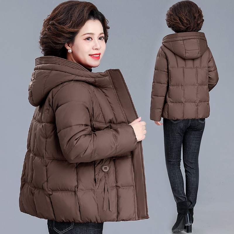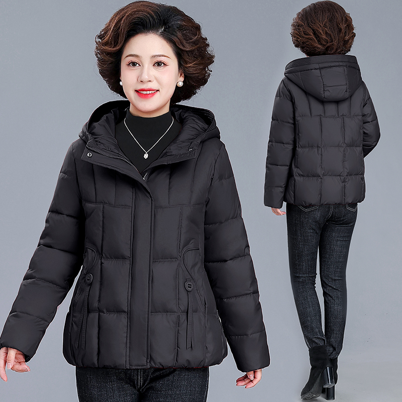 气质时尚保暖百搭棉服女2025冬季新款中老年妈妈纯色连帽加厚外套