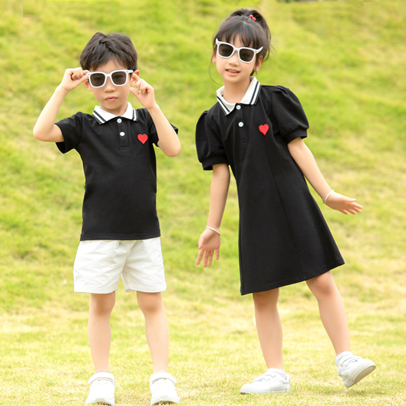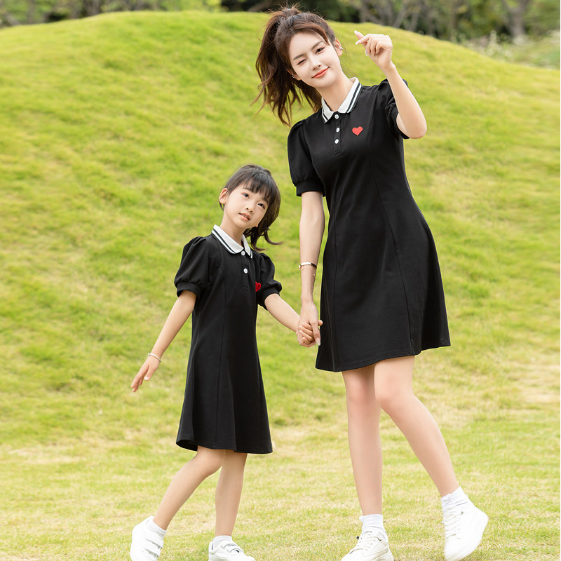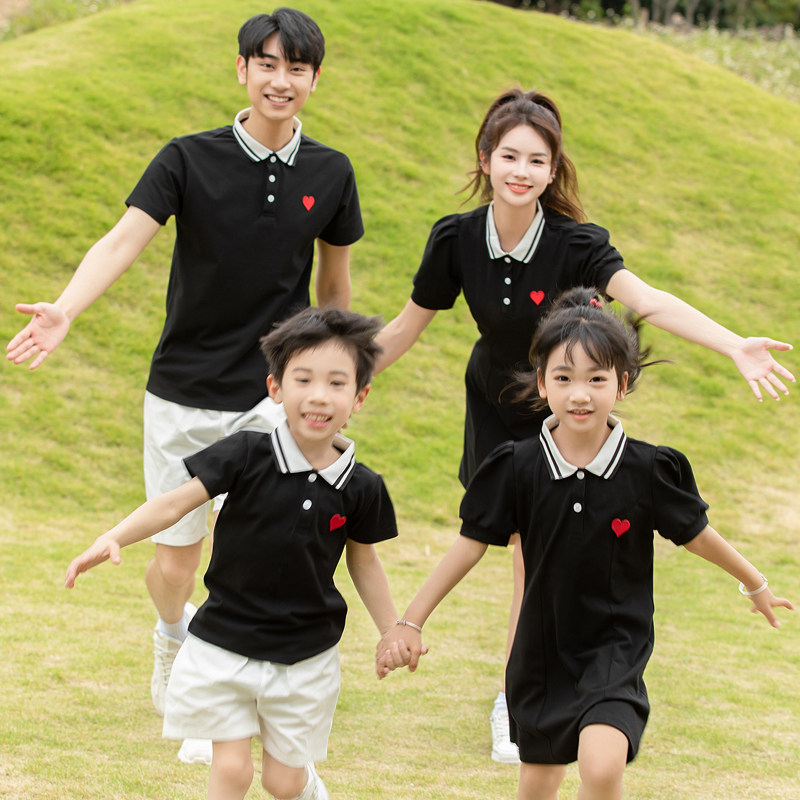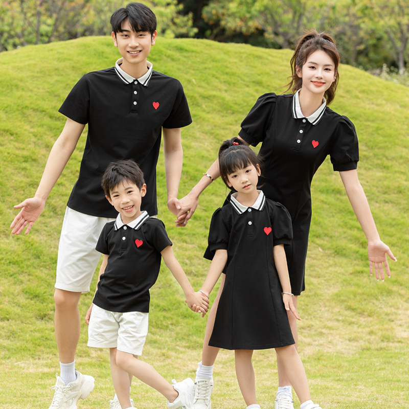 亲子装夏季一家三口全家福套装潮2023款四口家庭装母女连衣裙爱心