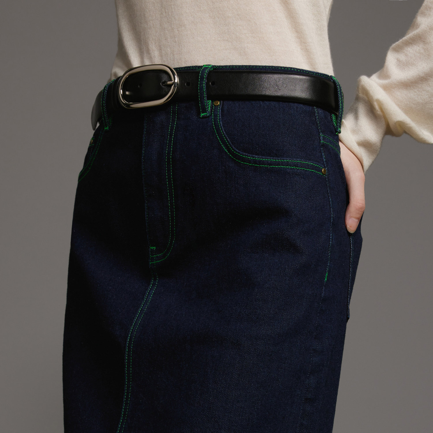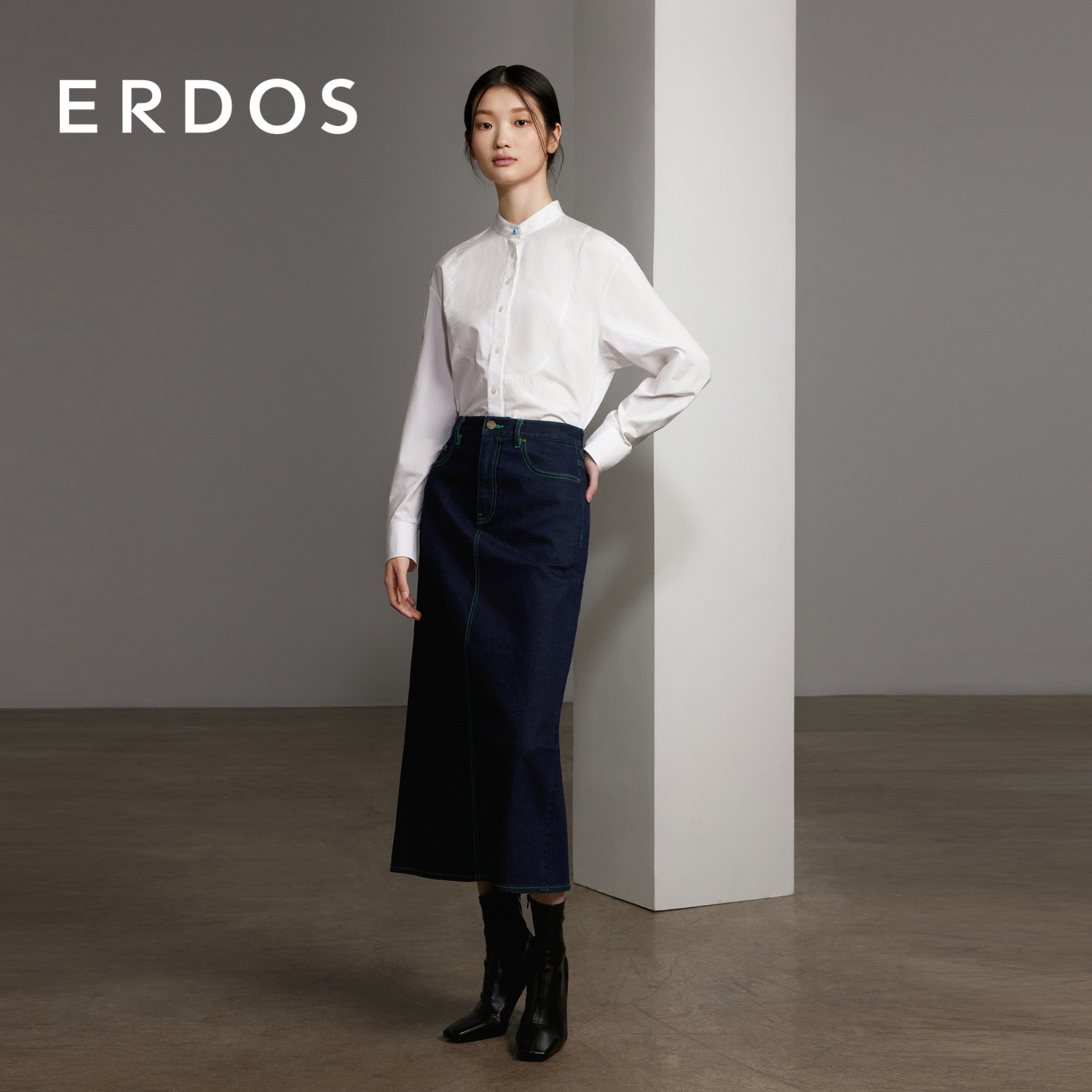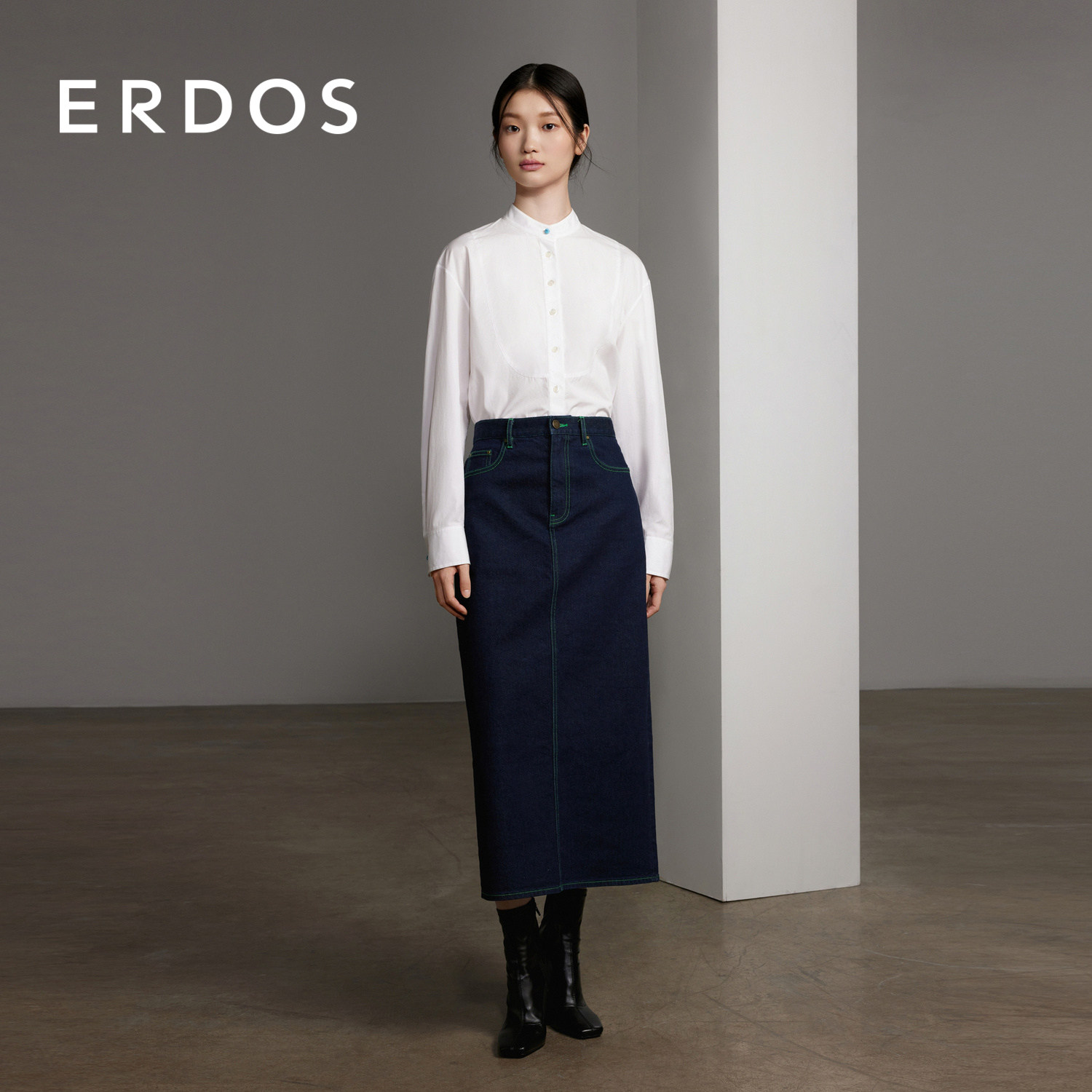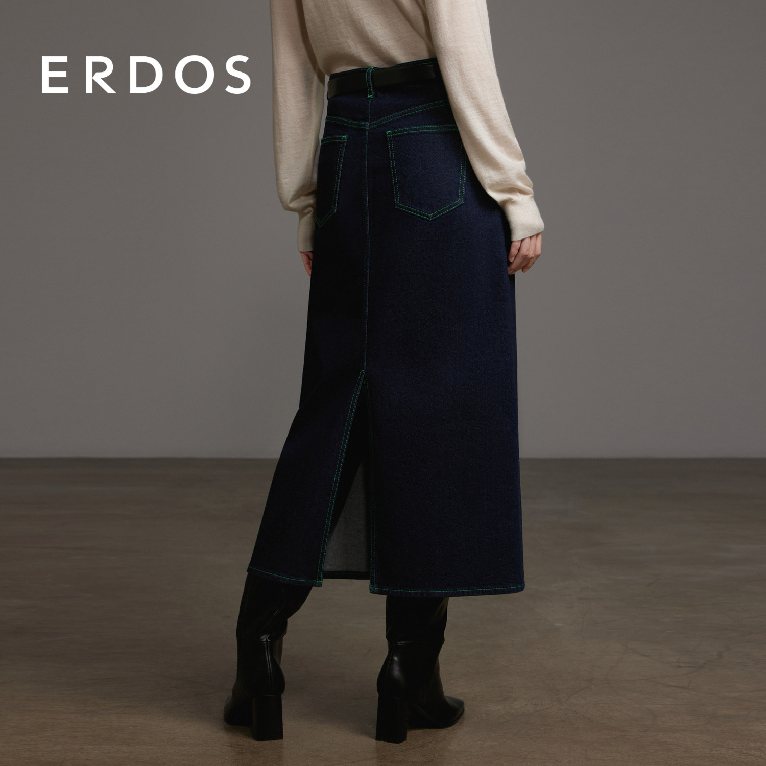 ERDOS 复古蓝色牛仔直筒铅笔裙女春季休闲中长款半身裙