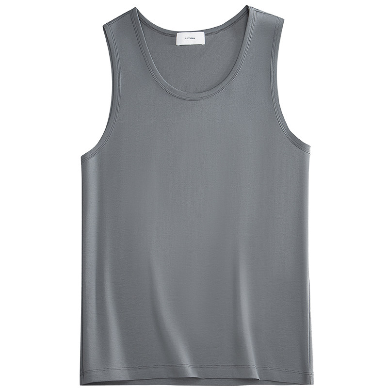 60支莫代尔棉冰丝背心男运动健身坎肩无袖T恤白色春夏季工字汗衫