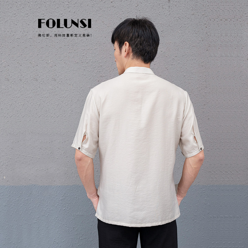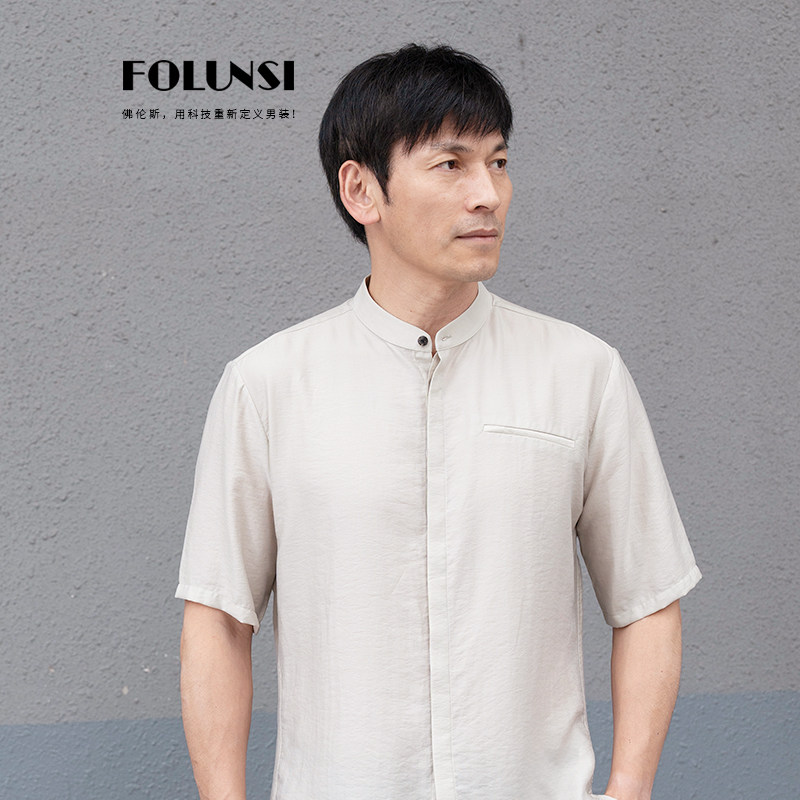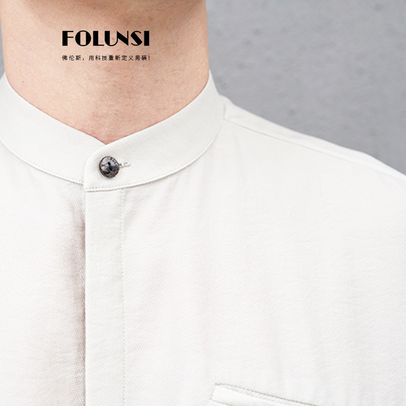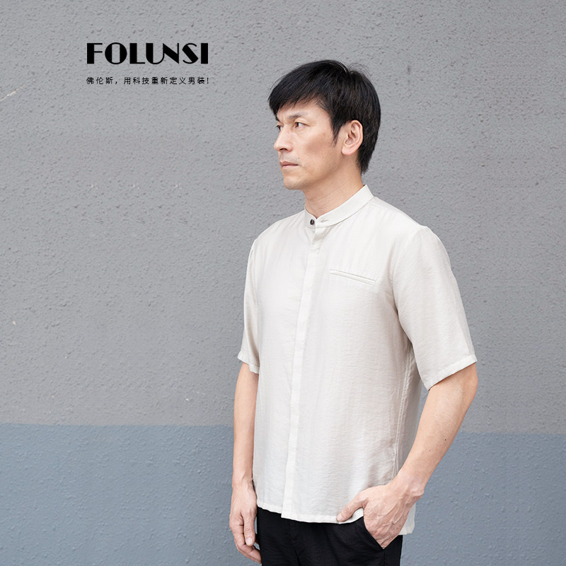 佛伦斯folunsi新款男衬衣春秋款男士休闲中式立领时尚短袖衬衫男