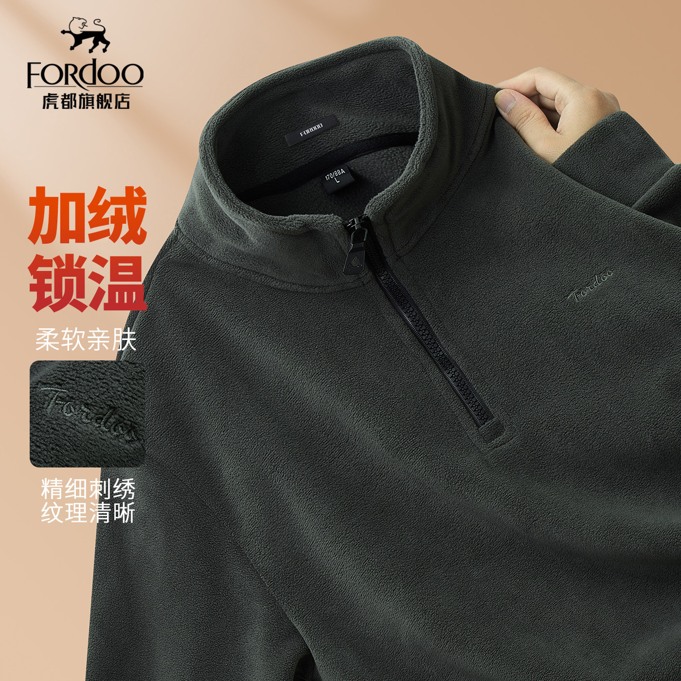 【保暖抓绒衣】虎都男士半拉链套头卫衣2025新款长袖T恤打底衫