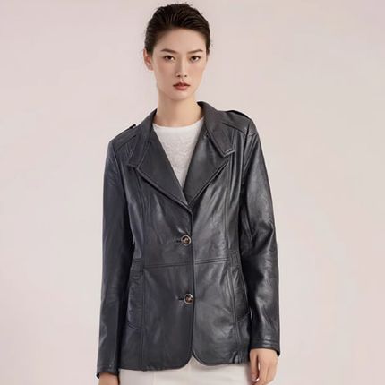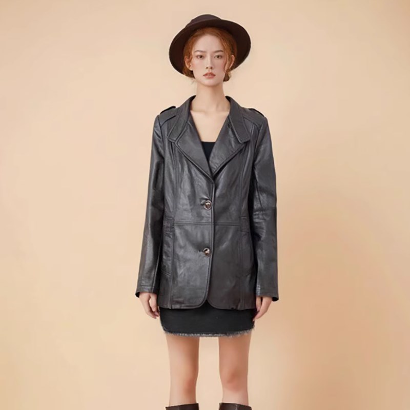 2024新款春秋皮衣男女大码显瘦中长款西服皮风衣韩版修身外套潮