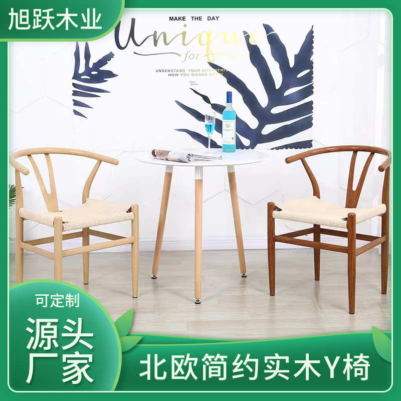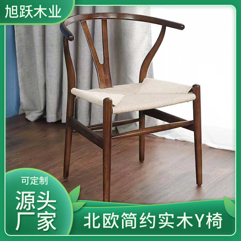 北欧现代简约餐椅 全实木Y椅中式藤编阳台圈椅 休闲扶手靠背椅子
