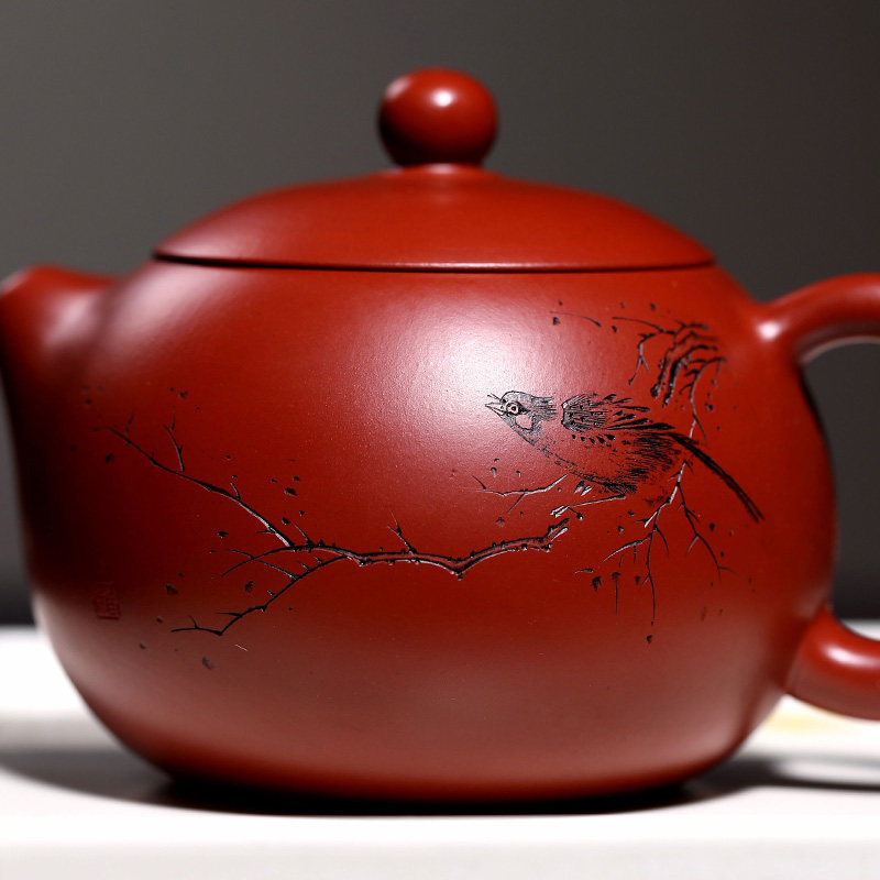 纯全手工大红袍朱泥刻字紫砂壶