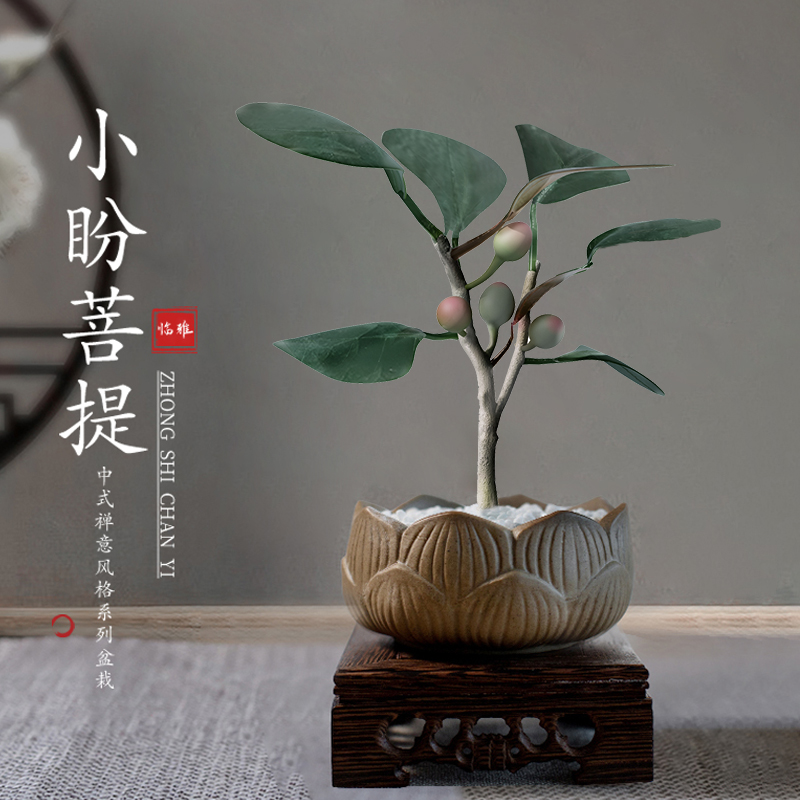 禅意小盼菩提盆栽植物室内花四季客厅观叶办公室绿植好养活盆景树