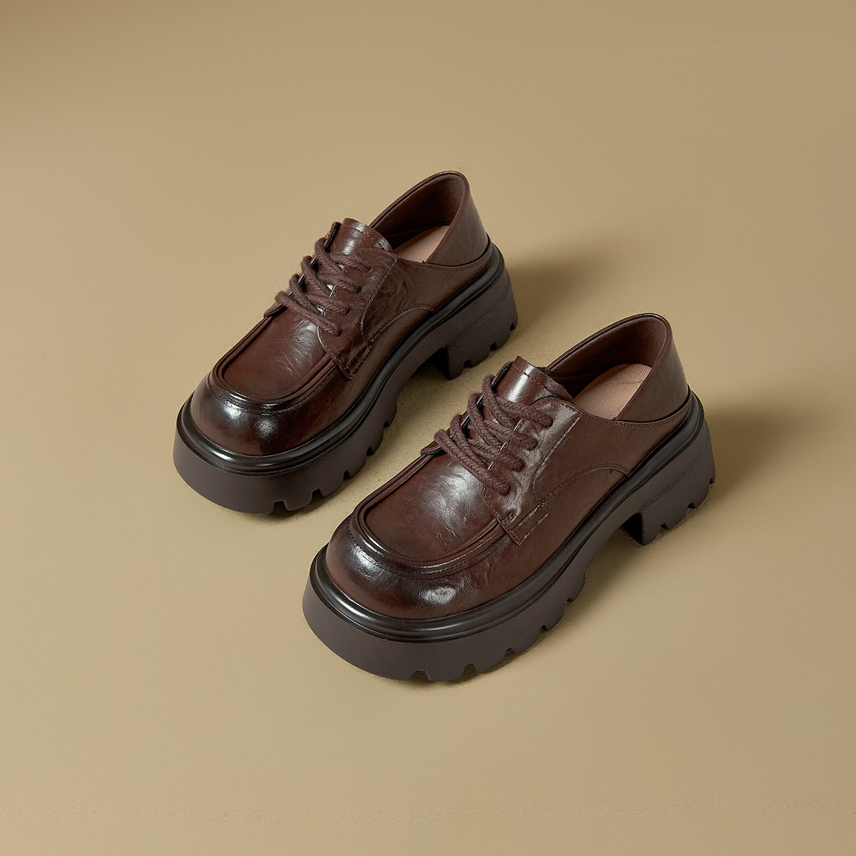 戈美其商场同款真皮高跟乐福鞋女厚底2025春季新款黑色小皮鞋秋冬