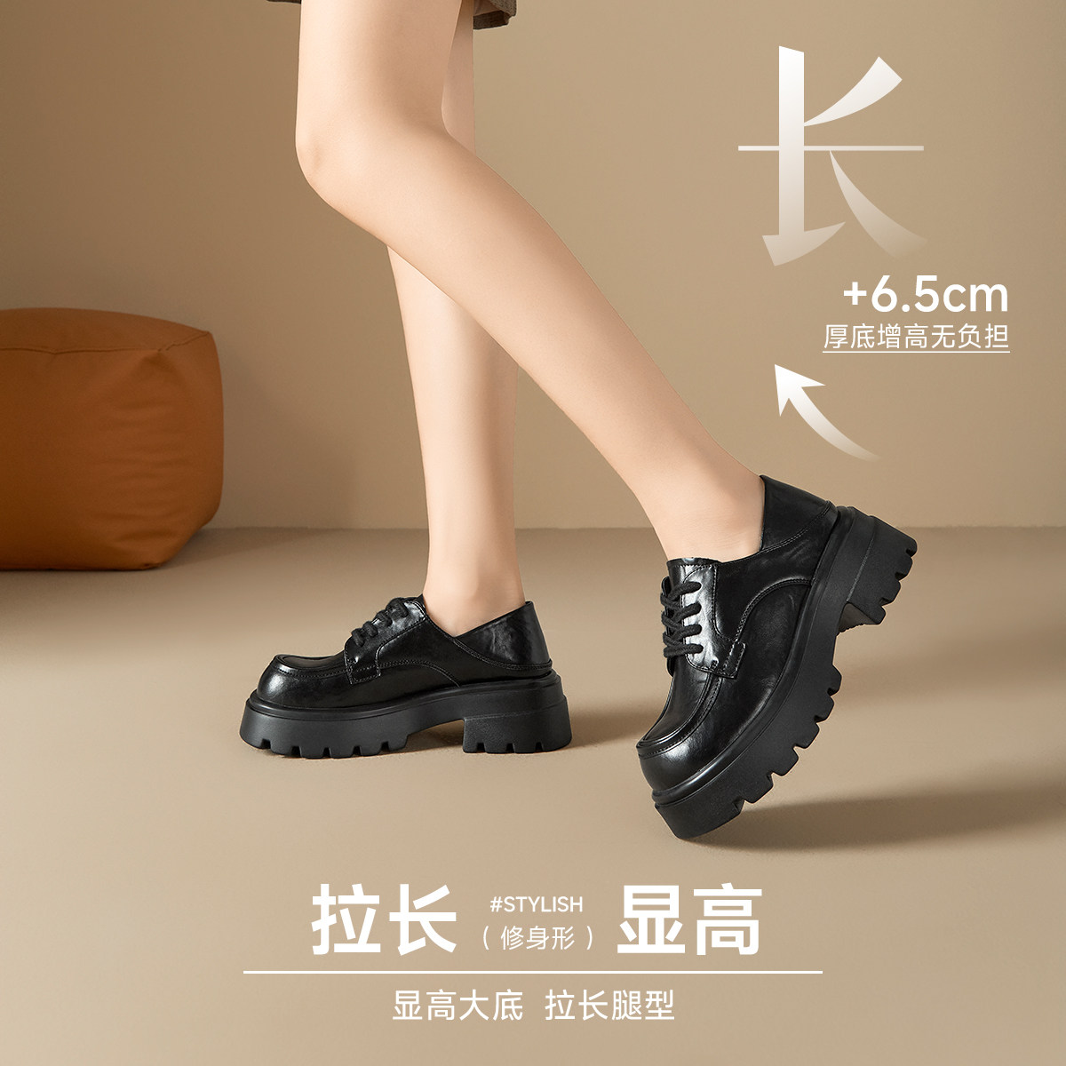 戈美其厚底气质黑色乐福鞋