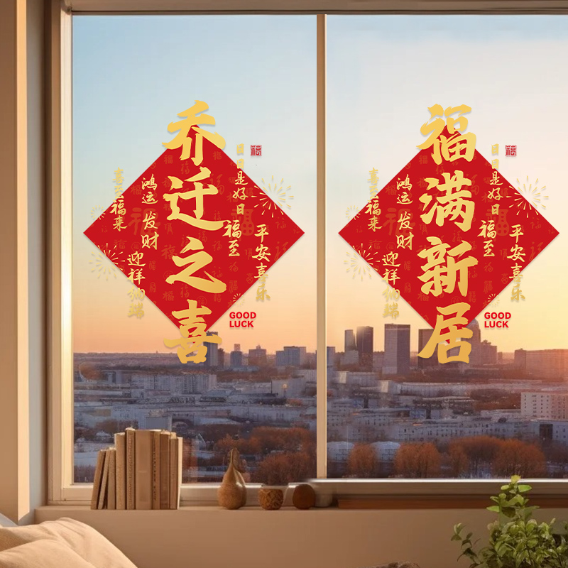 2026新年装饰开业乔迁窗花场景氛围布置静电玻璃门贴纸橱窗户贴画