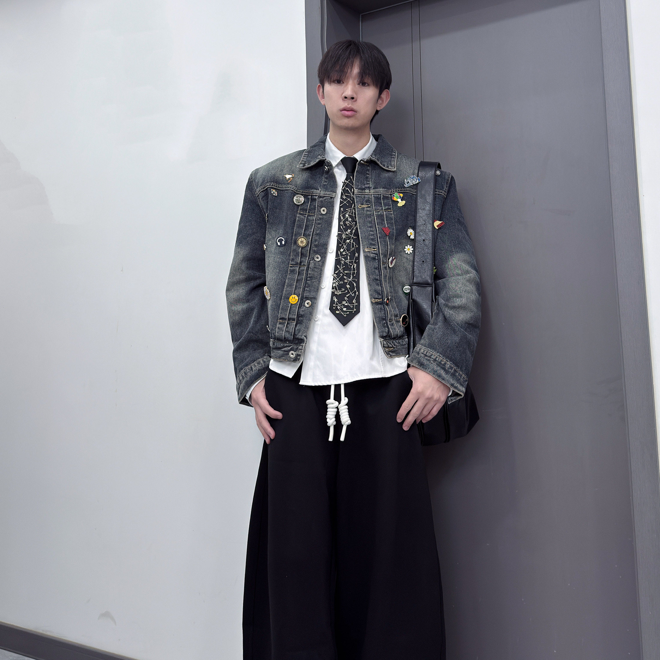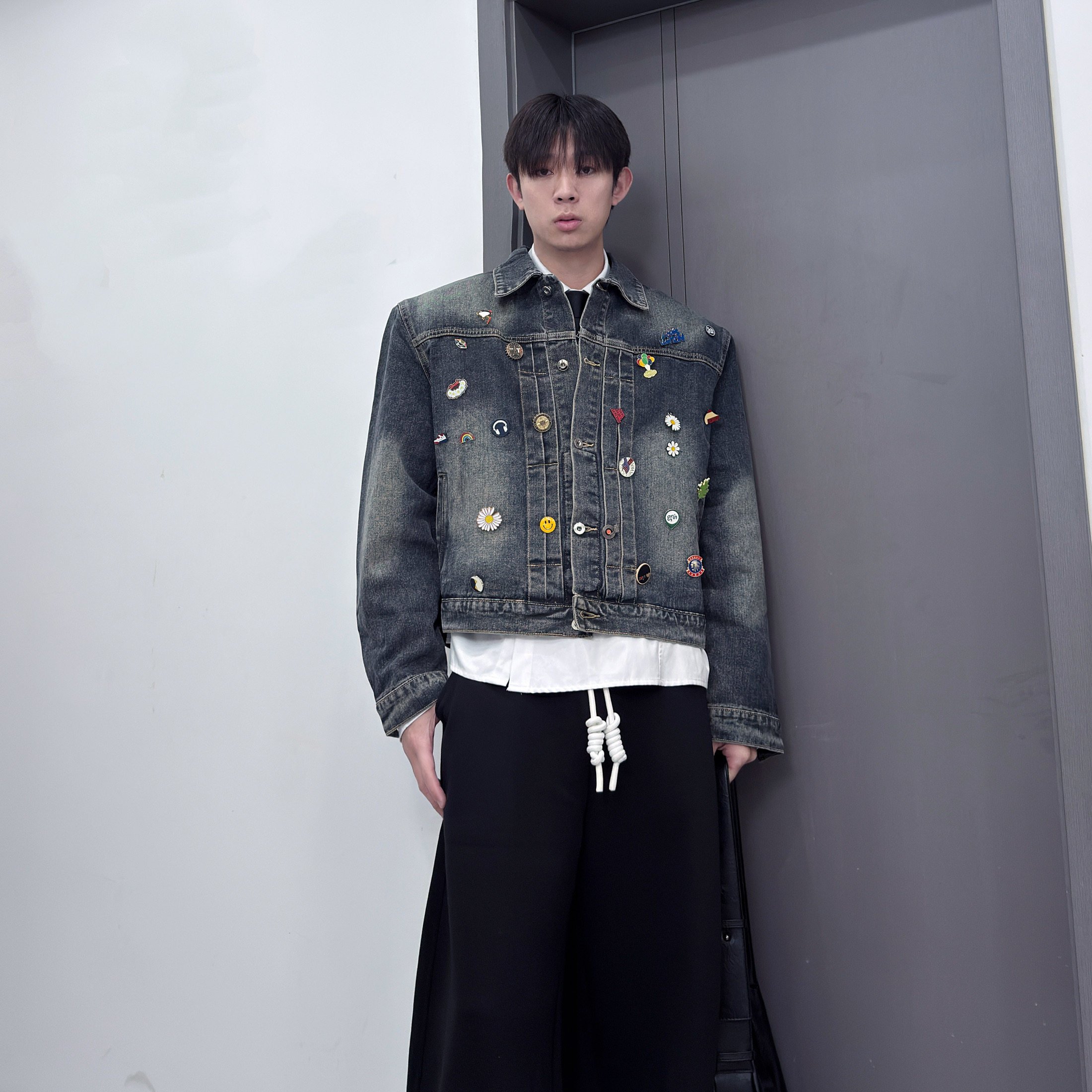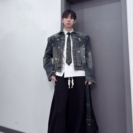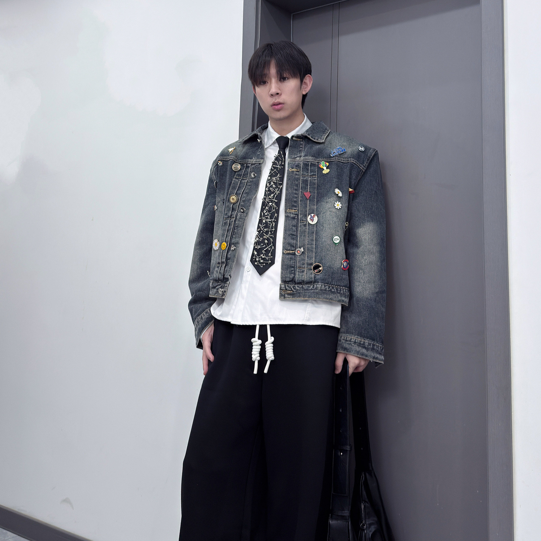 IDDB 春季美式复古胸针装饰牛仔外套男士 潮流宽松小众设计感夹克