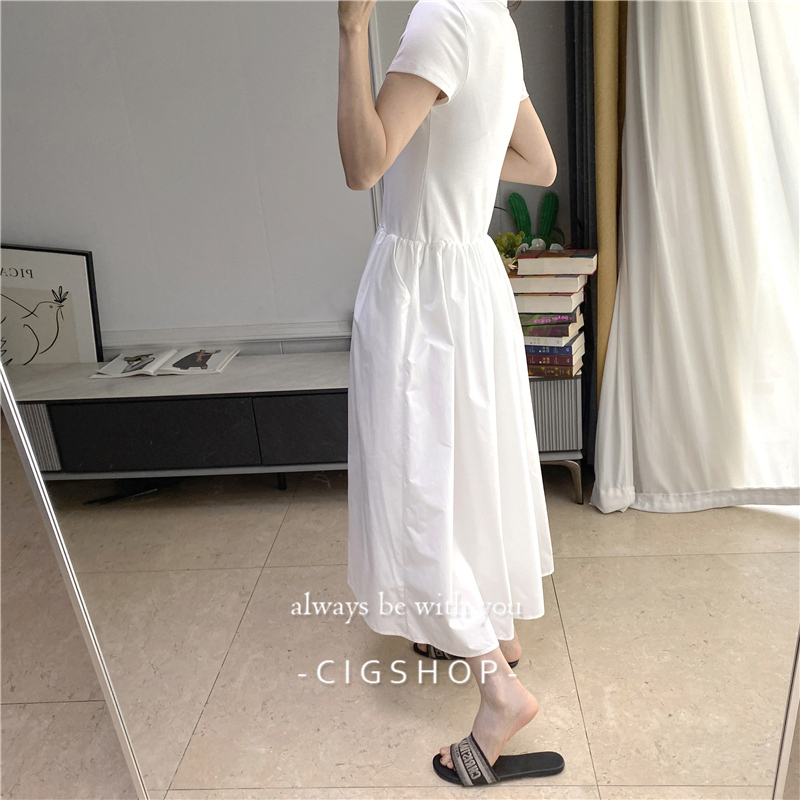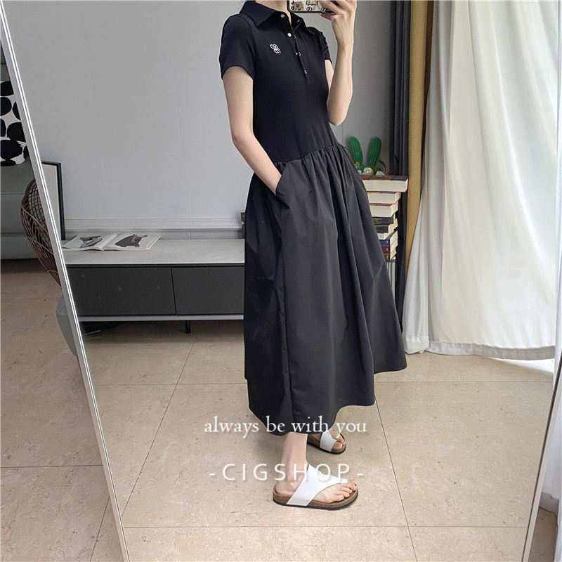 Polo领白色连衣裙女2025新款淡人穿搭中长款收腰裙子显瘦伞裙