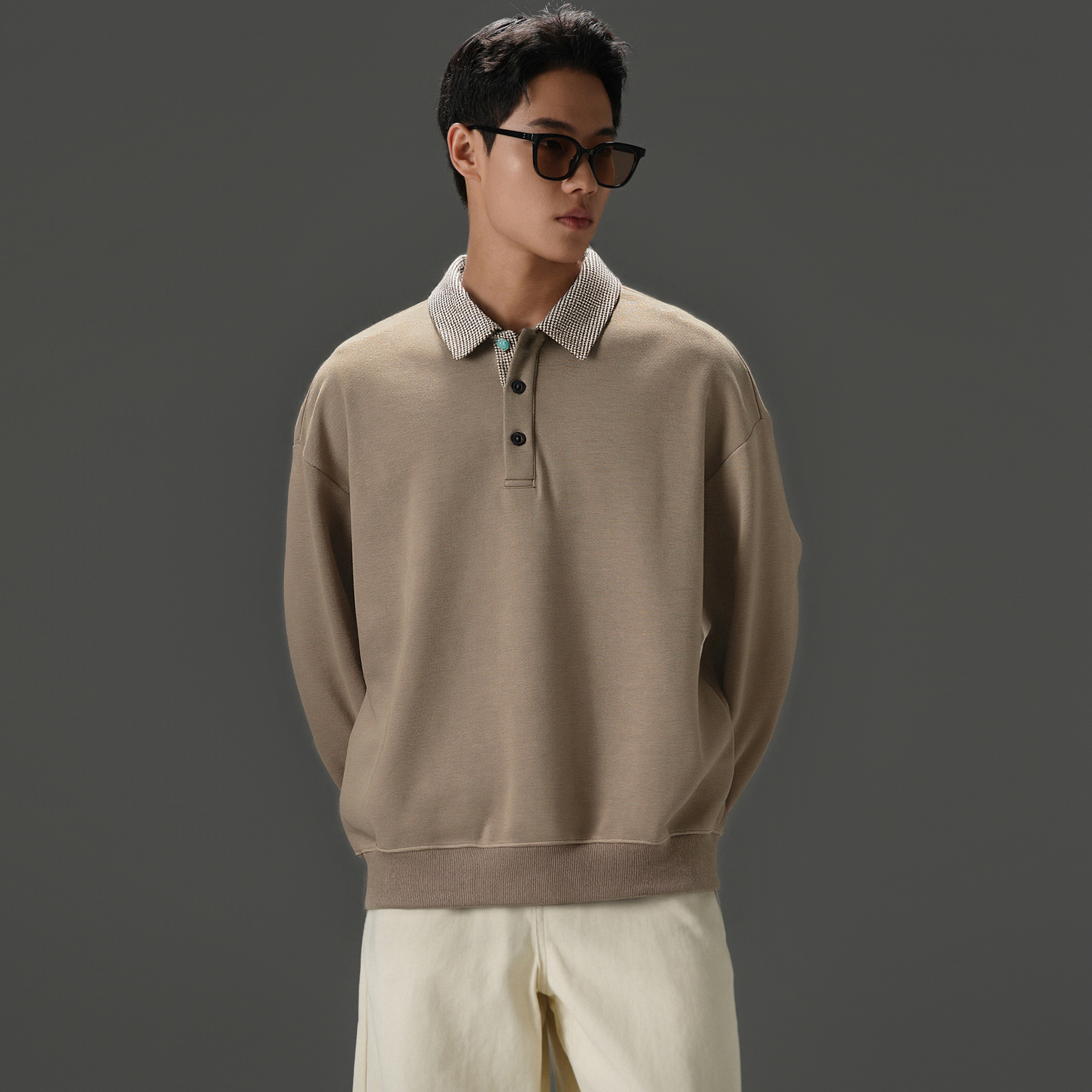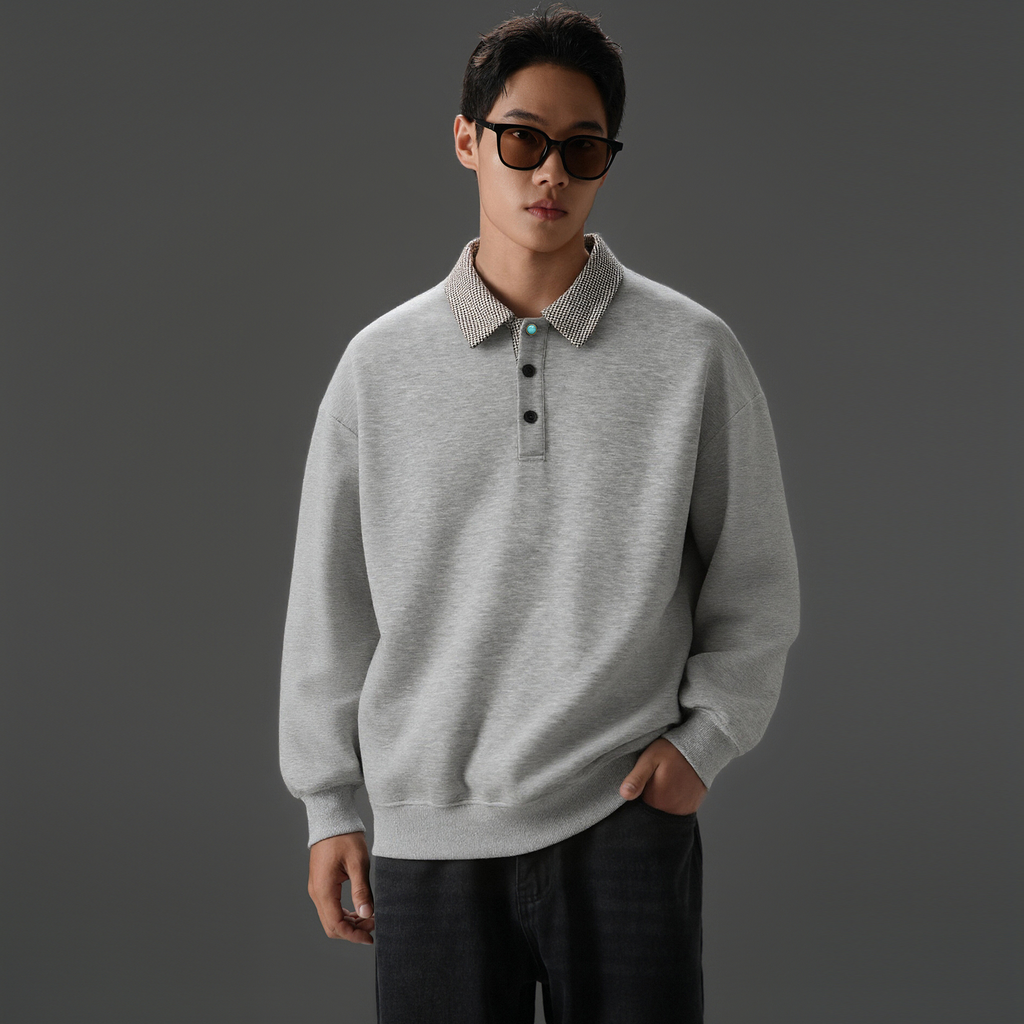 复古千鸟格长袖Polo衫