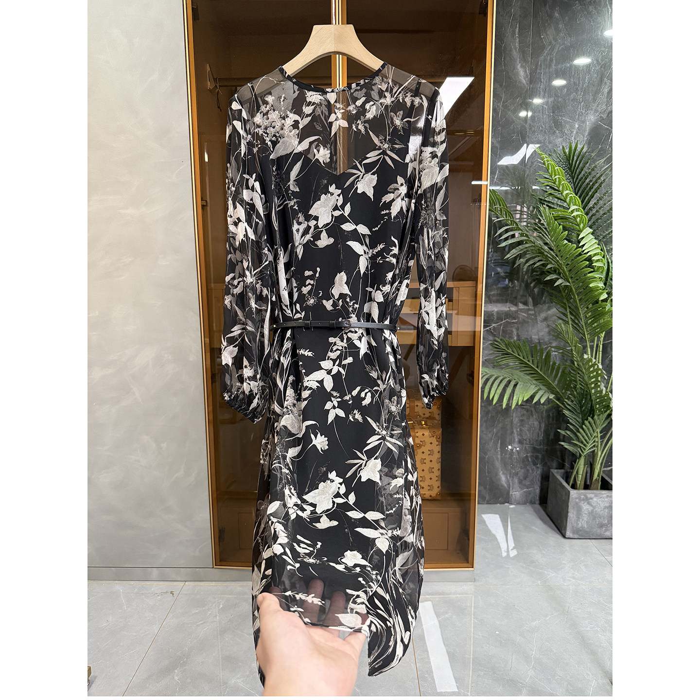 代工厂P牌料!宽松真丝乔其印花长袖圆领连衣裙 260102002~ME