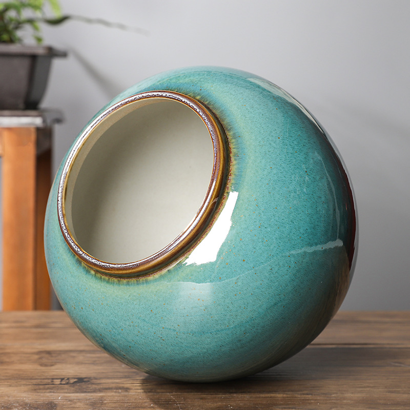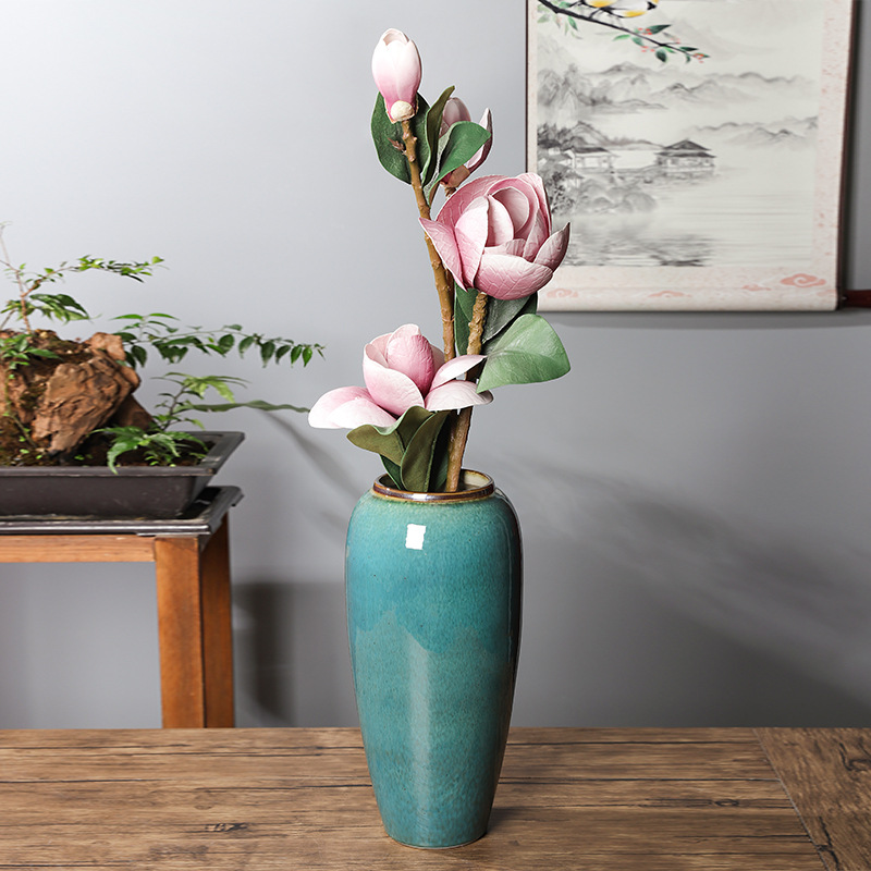 景德镇陶瓷花瓶摆件客厅插花中式玄关装饰品花器复古粗陶罐小花盆