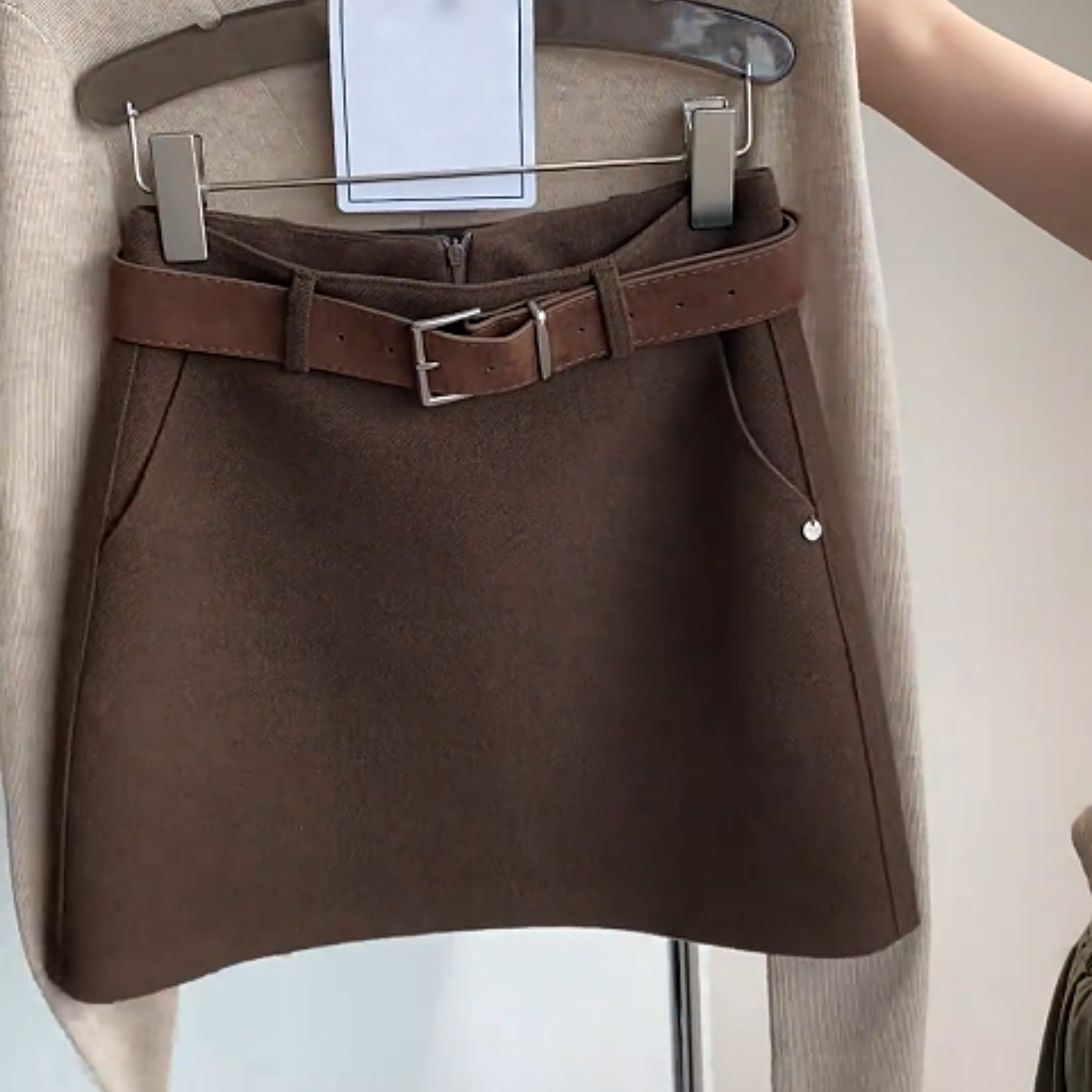 韩系复古咖色毛呢半身裙大码胖mm2025秋冬新款高腰显瘦百搭A字裙