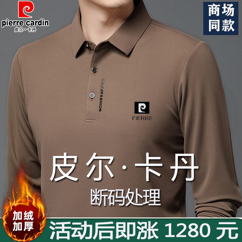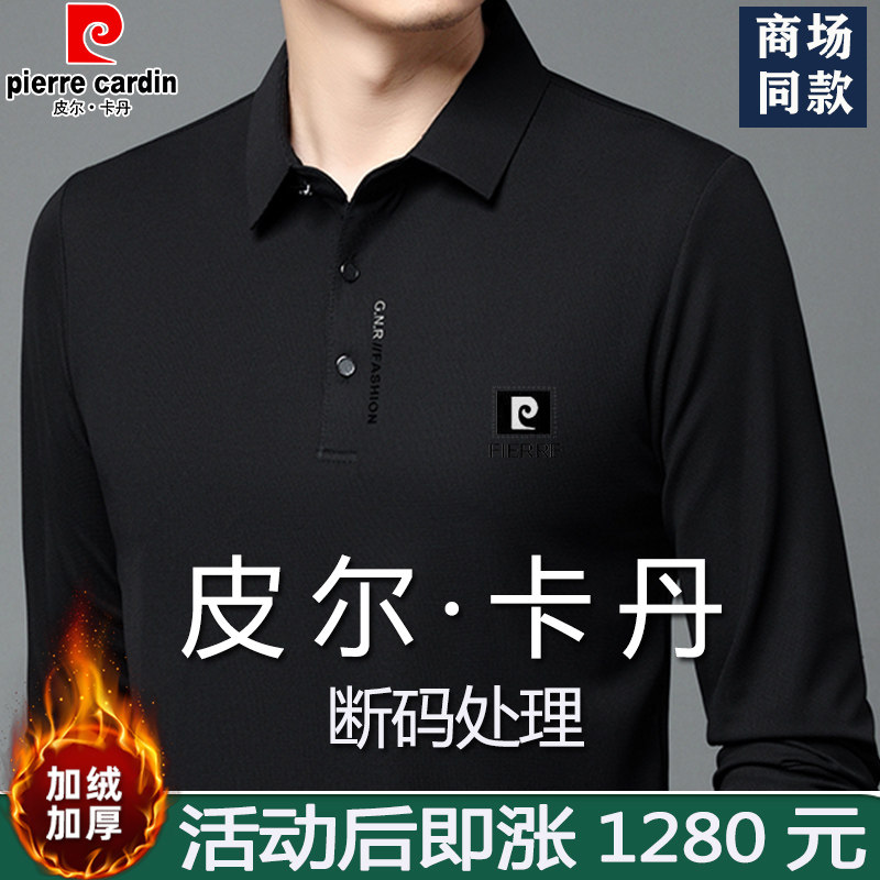 皮尔卡丹男士长袖T恤桑蚕丝POLO衫中年加厚保暖纯色打底衫上衣